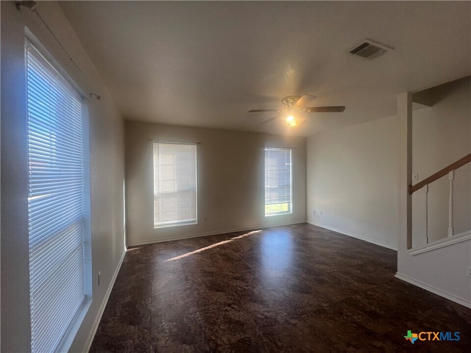 Unique 5 Plex provides unit E a private entrance. The landlord pays for lawn care and provides AC Filters. 3 Bedrooms and 2 Bath Apartment. UNIT E will be AVAILABLE in the end of January. This unit is conveniently located close to Fort Hood,schools,restaurants,stores,and hospitals. Master bedroom and a master bath downstairs,and two bedrooms and a minor bath upstairs. Kitchen is open to family room and has a electric range,a hood,a refrigerator. There is a laundry closet downstairs.