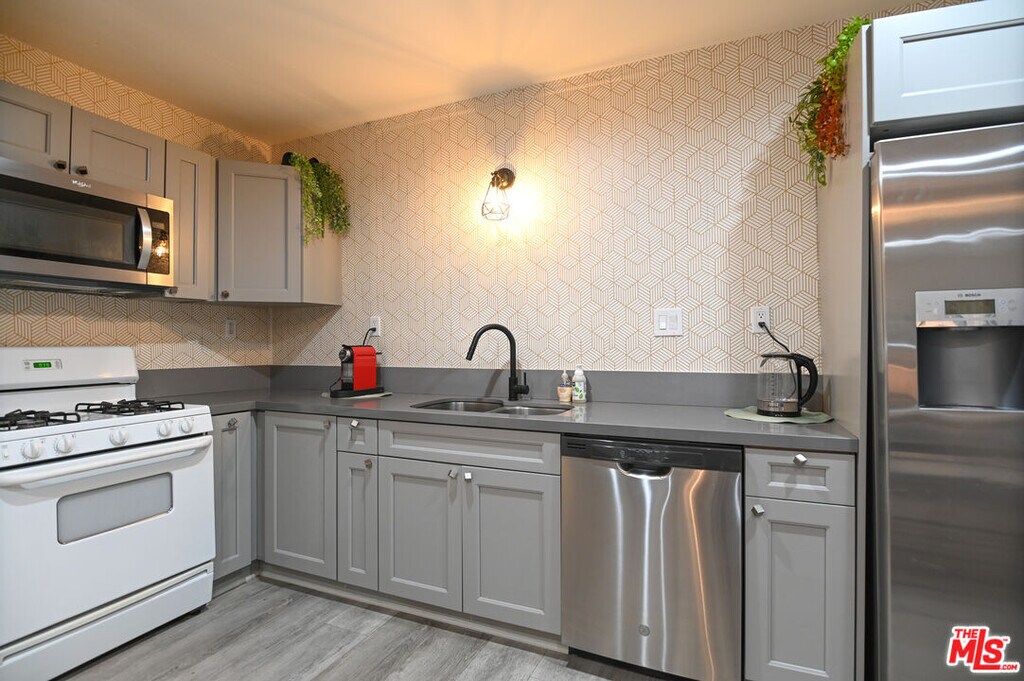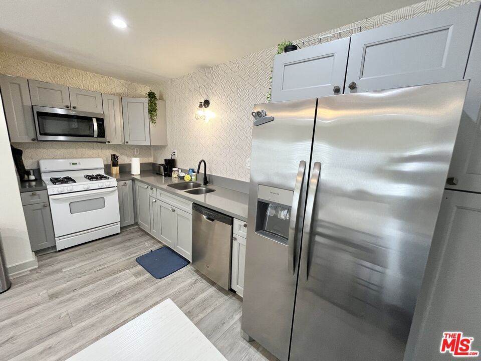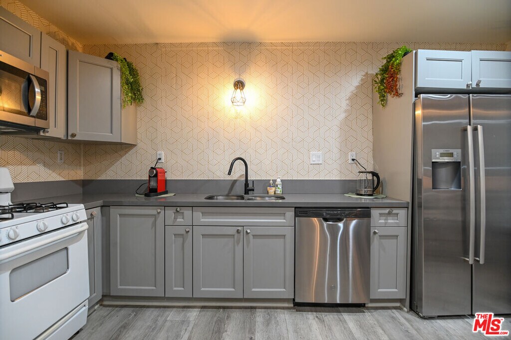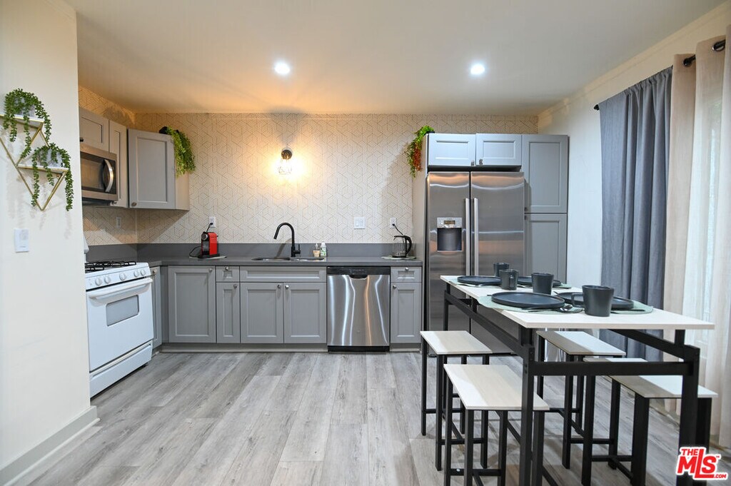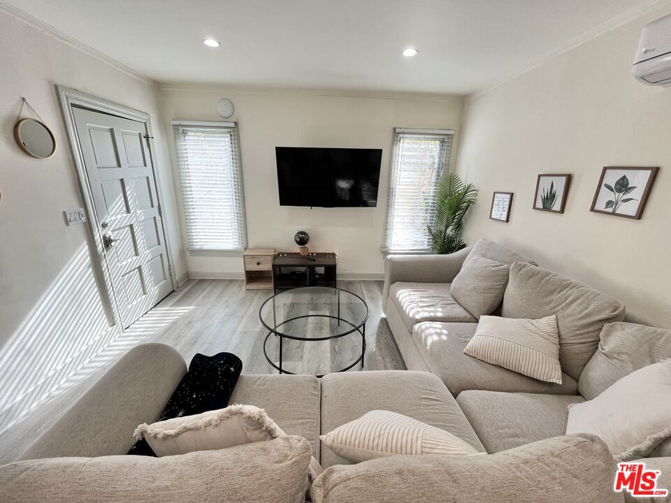 Prime West Hollywood Location! Situated at the rear of a beautiful gated triplex property, this quiet and cozy space offers private gated parking, in-unit washer and dryer, and private outdoor yard. This charming Spanish colonial space has updated floors, updated kitchen and bath, modern A/C wall units in each room, recessed ceiling lighting, and more. It's currently fully furnished including Smart TVs, but can be unfurnished or partially furnished to fit your needs. Half a block from Whole Foods and nearby several restaurants and shops. MLS# 26655619