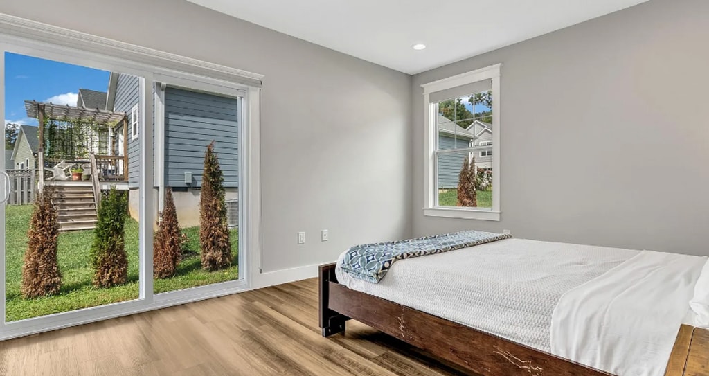 Welcome to Padgett Place, a friendly mountain community where every home feels like part of the landscape. Perched high above a peaceful cul-de-sac, this 3-bedroom, 2-bath retreat combines mountain charm with modern comfort. From the moment you arrive, stone and wooden staircases guide you to a welcoming front porch—an ideal spot for rocking chairs, a small table, and evenings spent watching the sun dip behind the mountains. Step inside and you’ll find tall ceilings and an open floor plan that create a sense of warmth and spaciousness. The kitchen is the heart of the home, designed for gathering and connection. A large island with seating for three makes the perfect place for casual meals or conversation while cooking. The deep sink, stainless steel appliances, and pendant lighting add both function and style, while crisp white upper cabinets paired with navy lowers and gleaming white countertops bring a fresh, modern touch. Just off the kitchen, a built-in desk provides a sunny nook for work or study, and the dining area, framed by large double windows, fills with natural light throughout the day. The master suite is a true retreat. Doors open directly to the outdoors, so you can step out and greet the morning air or stargaze at night. Inside, a walk-in closet with built-in shelving keeps everything organized, while the ensuite bath offers two sinks and mirrors and a private shower—perfect for both relaxation and daily routines. Additional highlights include front-loading washer and dryer, thoughtful storage, and plenty of light throughout the home. Outside, mountain views surround you, making every glance out the window a reminder of the beauty of your setting. With its cozy details, welcoming layout, and peaceful perch above the cul-de-sac, this Padgett Place home is more than a house—it’s a place to slow down, gather with loved ones, and enjoy the mountains all around. The home can be rented furnished or unfurnished!