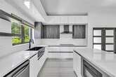 Luxury living meets exceptional versatility. A fully remastered sanctuary blending timeless elegance with modern sophistication. Nestled in a prime location in Coral Gables on a closed street, this exquisite property features a beautifully renovated 3-bedroom main house paired with a detached guest house offering two private efficiency suites—ideal for multigenerational living or hosting guests. Discover an ideal design, cathedral ceilings, Italian porcelain tile throughout, LED lighting, and high-end finishes. The chef's kitchen boasts premium appliances, custom cabinetry, and sleek countertops, seamlessly connecting to expansive living and dining areas—perfect for entertaining. Outside, enjoy meticulously landscaped grounds, private outdoor living areas, and a privacy gate.