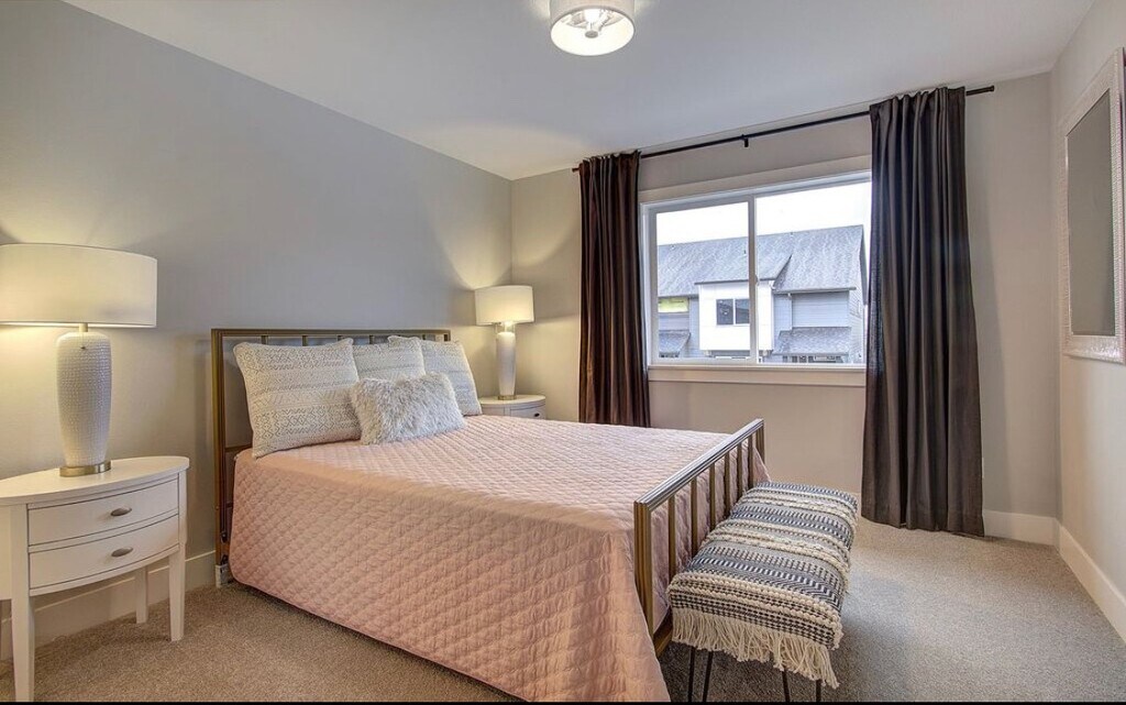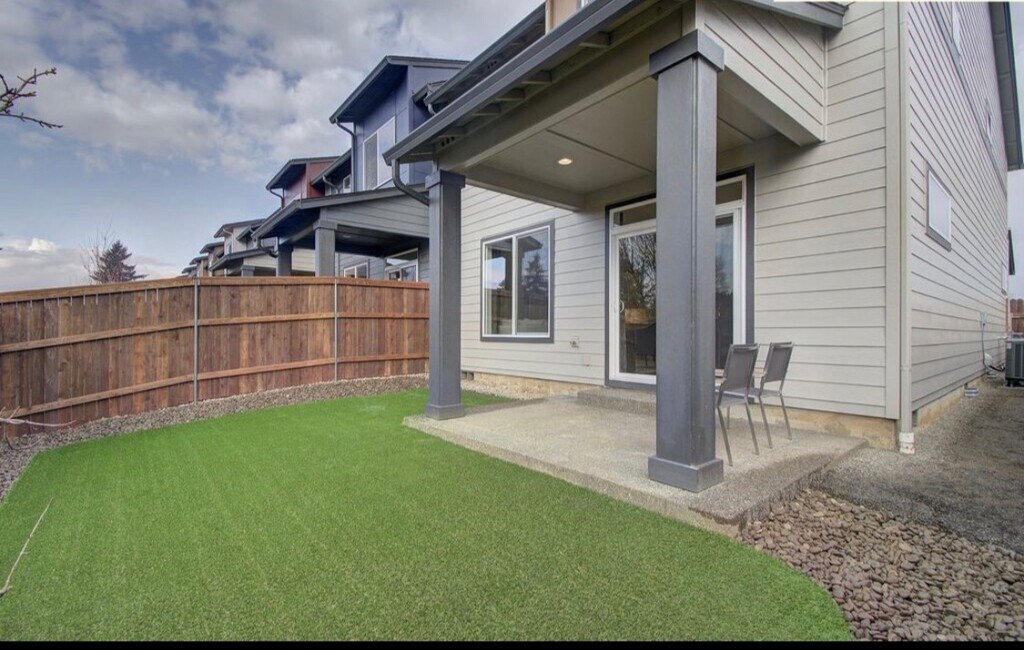 Spotless, modern, and move-in ready on a quiet corner lot with extra space and private yard access. This home blends premium designer touches—including stylish wallpaper accents and easy-care flooring—with an open main level that flows from kitchen to living to the fenced outdoor space, perfect for relaxing or entertaining. The HOA maintains all green spaces, and there’s an HOA-maintained playground about a 5-minute walk away. The backyard features low-maintenance astro turf. Premium LG washer, dryer, and refrigerator are included, and the single-car garage has a Level 2 EV charger for fast, convenient charging. Enjoy a peaceful neighborhood with quick access to schools, parks, shopping, and I-205/I-5. Abundant natural light and updated finishes make every room feel fresh and inviting. Move-in 12/1, possibly earlier. Don’t miss this rare corner-lot townhome that’s premium, quiet, and easy to enjoy