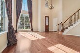 Well kept home with open floor plan and high ceilings. Brand new floors throughout much of home. Kitchen cabinets and granite countertops are beautiful and they are plentiful. Kitchen is large and open to family room with great fireplace. The living room in the front of the home could be used as a formal dining room if needed. Downstairs front living room has beautiful engineered wood. Much of home has just been upgraded with luxury vinyl. Upstairs is an enormous game room and 3 bedrooms with new luxury vinyl as well. Many other new upgrades in home not mentioned. This is an impressive home with high ceilings and beautiful stair case. Worth a look.