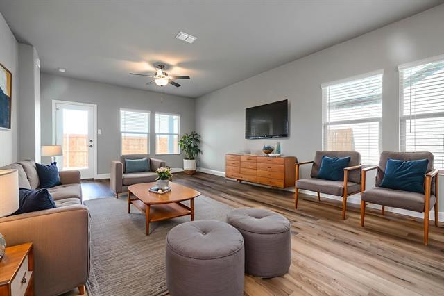 Special offer! Free 50 inch TV for lease starting on or before 10th Jan 2026 Move-in ready, Never lived in East facing lot. This 2025 new construction home is located in the Simpson Crossing community and zoned to McKinney ISD. Featuring 4 bedrooms and 2 bathrooms, the home offers a bright open-concept layout ideal for modern living and entertaining. The kitchen opens to the living area and includes stainless steel appliances with REFRIGERATOR, WASHER AND DRYER included. The primary suite offers a private bath and walk-in closet. Additional features include an initial smart home package with a Ring doorbell and smart lock entry. Enjoy a covered patio and fenced backyard. Community amenities include walking trails, playground, and pool. Convenient location with easy access to shopping, dining, and major roads.