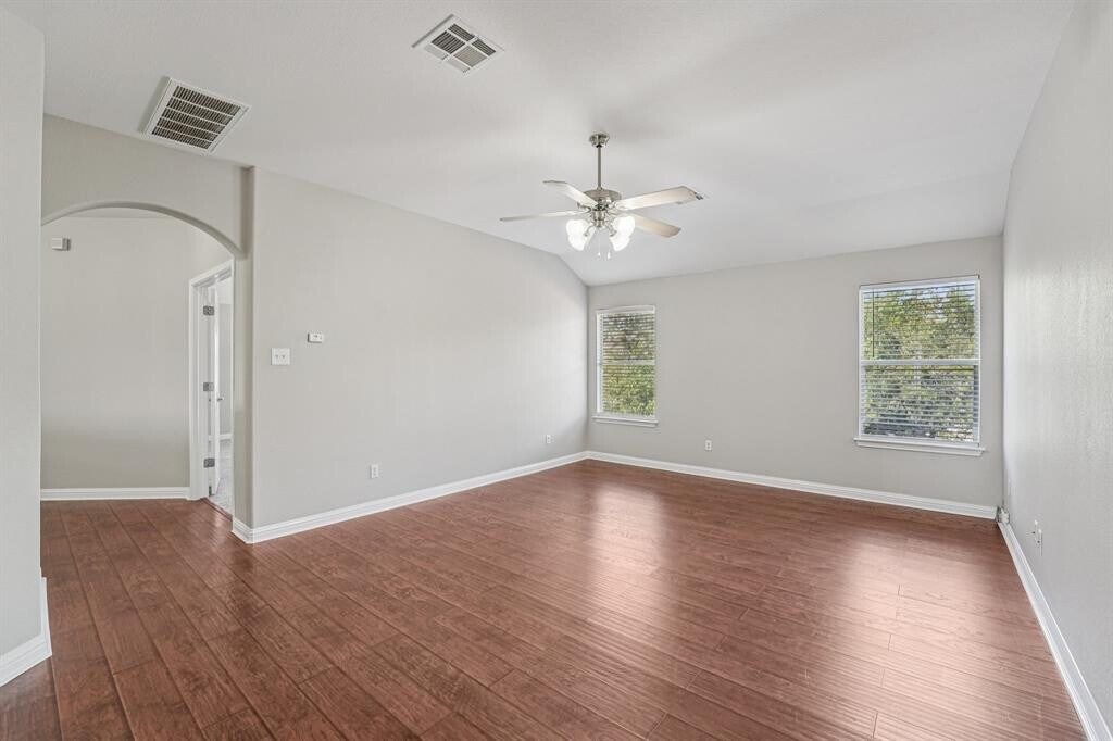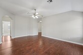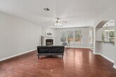 Welcome to this spacious and beautifully updated 5-bedroom, 4-bath home featuring a large game room and an open-concept layout perfect for modern living. The kitchen boasts a gas cooktop, Corian countertops, and built-in microwave and oven—all overlooking the inviting main living area. Hand-scraped wood flooring and abundant natural light enhance the living and dining spaces. The primary suite offers a relaxing retreat with a private bath featuring a soaking tub and separate shower. Enjoy outdoor living on the covered patio overlooking a generous backyard—ideal for entertaining or play. Fresh interior paint and carpeting (October 2025) make this home move-in ready. Conveniently located near shopping, dining, and major employers!