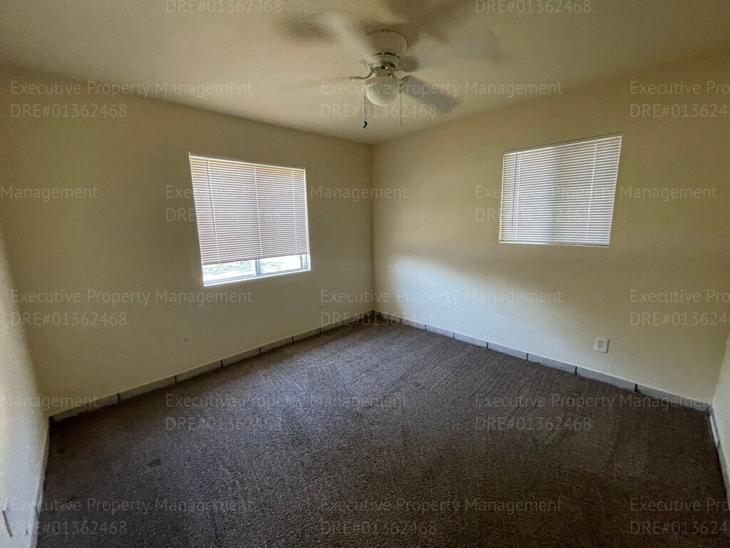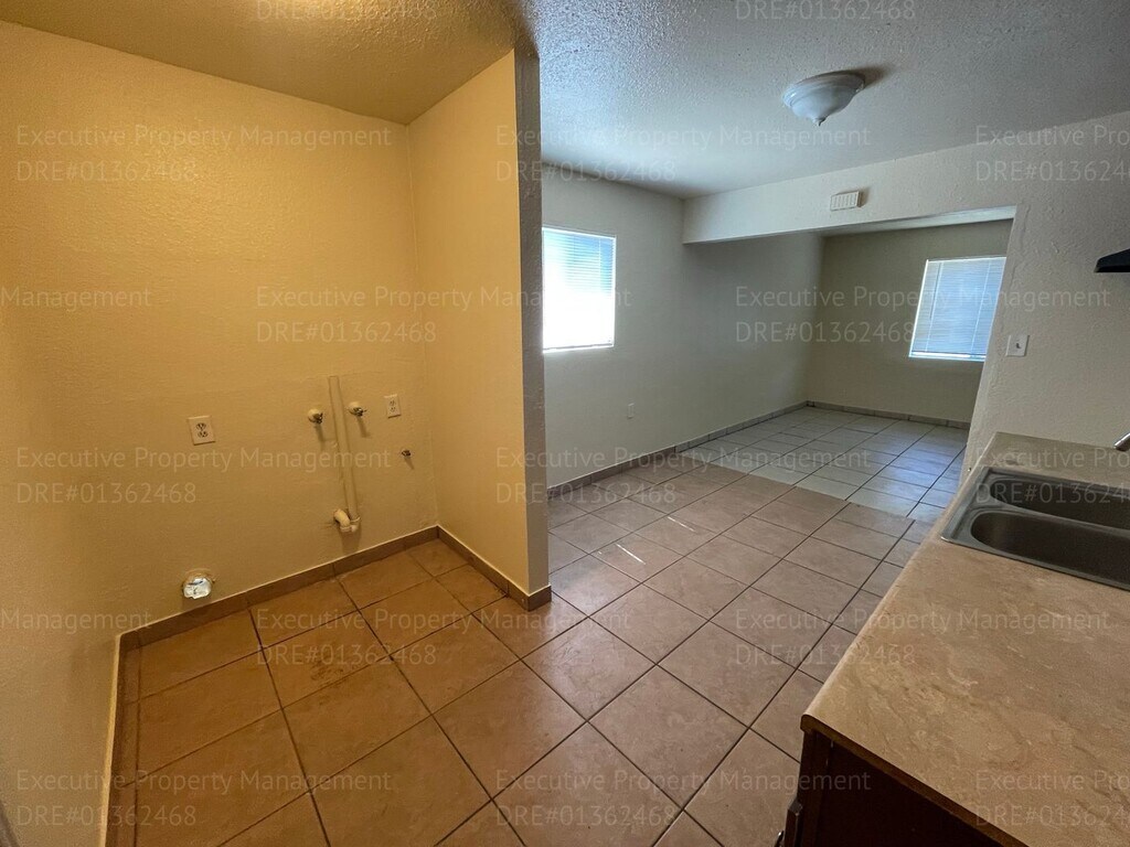 Welcome to this charming 2-bedroom, 1-bathroom house. This cozy home features a fenced yard for added privacy and security doors for peace of mind. Inside, you'll find tile flooring throughout the main living areas, with carpeted rooms for added comfort. The bedrooms are equipped with ceiling fans to keep you cool during the warmer months. Additionally, this house offers convenient washer/dryer hookups for your laundry needs. Don't miss out on the opportunity to make this house your new home! DRE#01362468