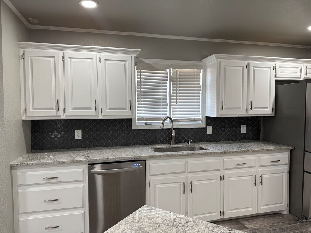 Gorgeous newly remodeled 3 bedroom 2 bath home with all new flooring, paint, cabinets, granite countertops and appliances including the refrigerator. Sequestered Main bedroom with large private bathroom, generous guest rooms, tons of storage, fireplace, corner lot with side entry 2 car garage and workshop