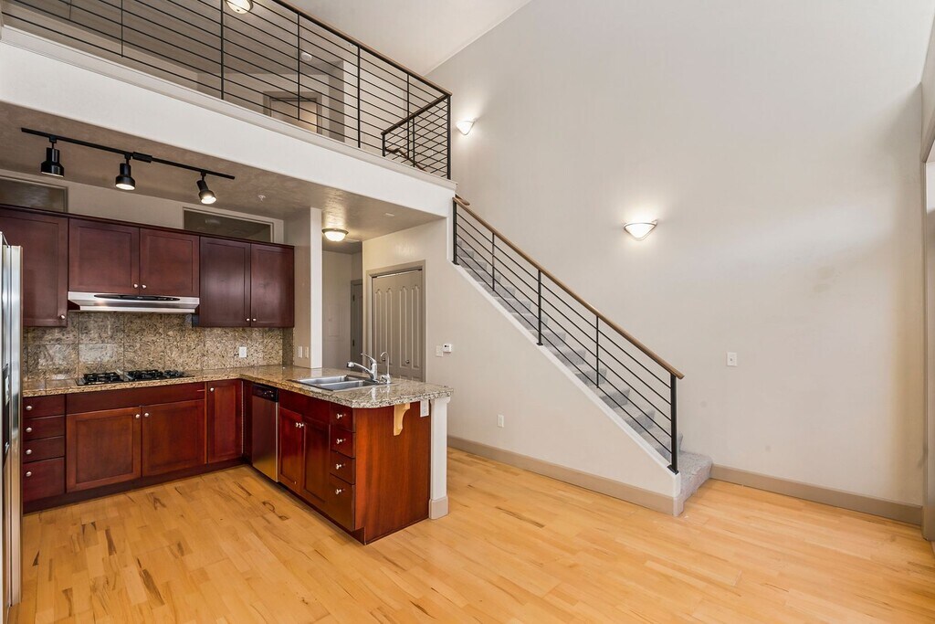 Downtown condo at Hyde Park Place. Located in the in the heart of the North End of Boise. Walking distance to downtown, entertainment and the foothills. 1 bedroom and 1 bathroom are located downstairs and the open loft-style master suite with a luxurious master suite upstairs. Kitchen has stainless steel appliances, granite surfaces & hardwood flooring. Private balcony. Washer and dryer are included. Designated garage parking on site. Water, sewer and trash are paid by the Owner. Available for immediate occupancy for $1995 a month. Please contact Tillie B. . Windermere Property Management. Equal Housing Opportunity.
