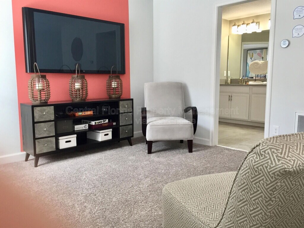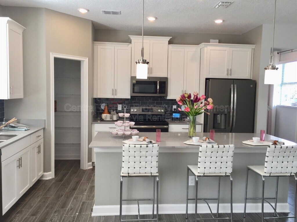 Here is your chance to live in a gorgeous state-of-the-art, SMART home, built by Lennar. This spacious four-bedroom, three-and-a-half-bathroom home features a two-car rear-load garage located off the back. This two-story floor plan offers all the space your family will need to include two master en-suites - one upstairs and another on the first level. There is a family room, a kitchen with a breakfast nook, a dining room, an upstairs laundry room with hook ups, and a separate upstairs loft. This home has many smart features including all solar (house is solar. Solar fee is $75/mo), hybrid water heater, 15 SEER AC, programmable thermostats, USB outlets in master bedrooms and kitchen, wireless security and Alexa home automation, GE stainless refrigerator with ice maker, glass cooktop range, 42" cabinets with brushed nickel hardware, granite countertops, full glass backsplash, designer faucet with pull out spray nozzle, paver driveways and walkway, Schlage touch screen entry locks with RING, 2" designer wood blinds, GE washer/dryer, 17" ceramic tile. The community has a Resort-style Community Center with a pool, Splash Park, Tot Lot, Playgrounds, Paved Trails, Clubhouse, Book Exchange, Hammock Beach, and a Lake Front Park. Rent includes cable/Internet/HOA Dues. This house is solar-powered. Renters insurance is required. Only one small pet. By submitting your information on this page you consent to being contacted by the Property Manager and RentEngine via SMS, phone, or email.