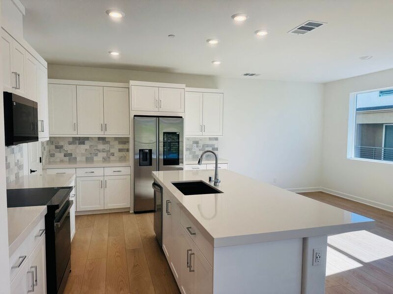 This brand-new tri-level townhome is offered for lease and is located within the desirable Laurel Phase of a well-maintained condo association. Offering approximately 1,800+ square feet of thoughtfully designed living space, the home features three bedrooms, three and a half bathrooms, and an attached two-car garage with direct access, blending modern style, comfort, and everyday functionality. The main-level entry welcomes you into the lower level of the home, which is ideal for use as a private guest suite, granny flat, or home office. This level includes a full bathroom and direct access to the attached two-car garage, providing flexibility and convenience for a variety of living arrangements. The second level features an open-concept layout that seamlessly connects the kitchen, living room, and dining area, creating an inviting space for both entertaining and daily living. The well-appointed kitchen offers modern finishes, ample cabinetry, and a functional design, while a conveniently located half bathroom completes this level. Large windows bring in abundant natural light, and a spacious balcony deck extends the living space outdoors, perfect for relaxing or hosting guests. The third level offers two spacious en-suite bedrooms, each with its own private bathroom. The primary suite includes a generous walk-in closet and a large bathroom with a standing shower. The secondary en-suite bedroom features a full bathroom with a tub. A conveniently located stackable laundry closet on this level adds to the home’s practical and efficient layout. Additional features include a garage equipped with solar power and an EV charging unit, making the home energy-efficient and electric-vehicle ready. A water recirculation system provides instant hot water throughout the home. As part of the Laurel Phase community, residents enjoy neighborhood amenities located directly within the complex, including pickleball courts, a tot lot, and designated BBQ areas. With its modern finishes, smart upgrades, and access to desirable community amenities, this brand-new townhome presents an exceptional leasing opportunity.