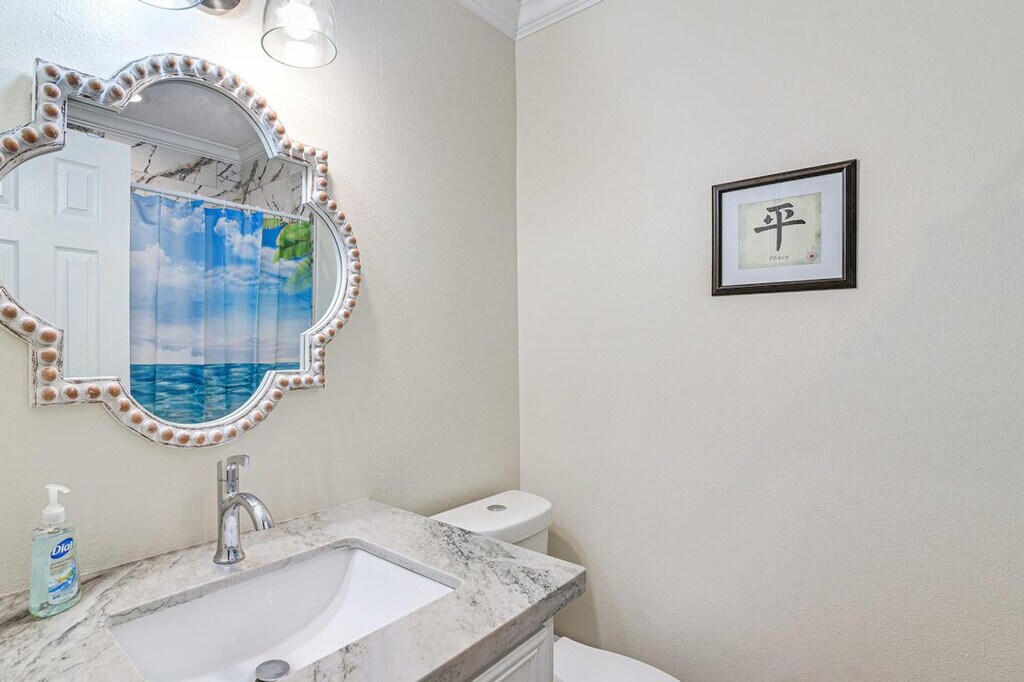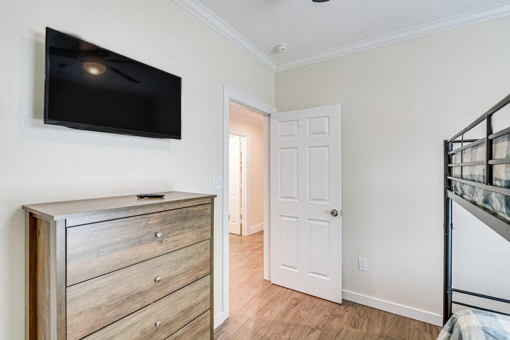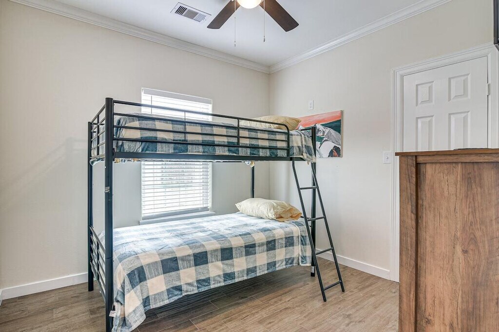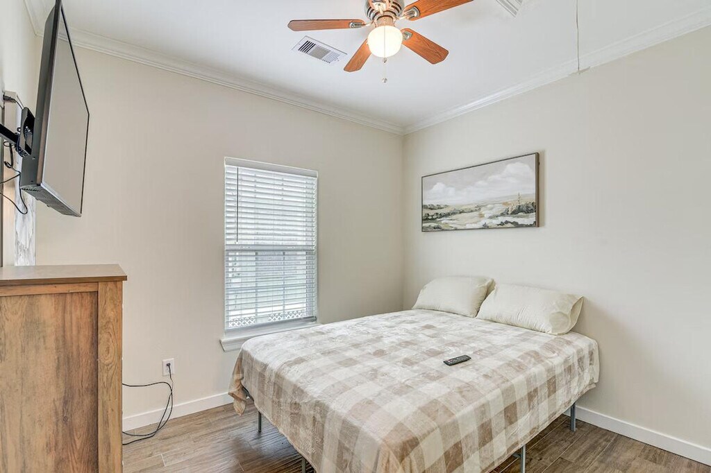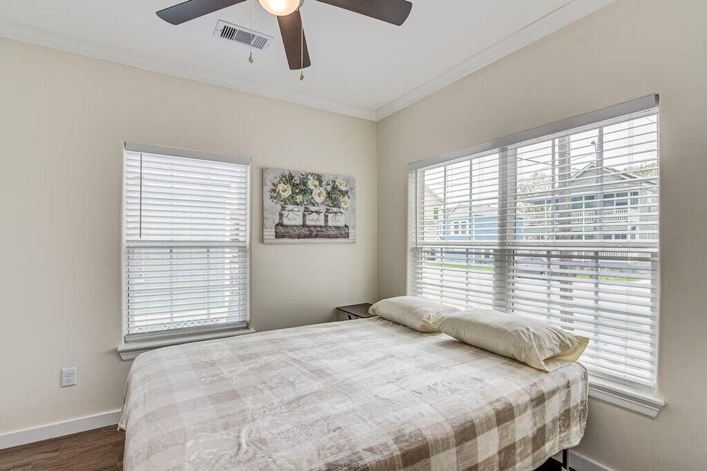 Feel at home during your next extended stay in this charming single-story, 3-bedroom, 2-bath home in Galveston. Please note that there are 6 steps required to enter the property. This vacation rental boasts a fully equipped kitchen and a modern interior. The kitchen includes cooking basics, a microwave, refrigerator, stove/oven, dishwasher, and drip coffee maker. Enjoy the convenience of 4 Smart TVs, high-top seating, ceiling fans, free Wi-Fi, linens/towels, a washer and dryer, central air conditioning, and electric heating. With its fantastic location close to the parade route, this home offers easy access to the area’s popular attractions. Spend your days relaxing at a nearby beach, strolling along the Historic Pleasure Pier, or exploring the Moody Mansion. You can also catch a local parade in Galveston’s entertainment district. Quiet hours are observed from 10:00 PM to 7:00 AM. This property features 2 exterior security cameras: 1 camera is located in front of the house facing the front side, and 1 camera is in the back of the house facing the back side. The cameras do not look into interior spaces. The cameras record video and sound when activated by motion and will record when it first senses motion and 30 seconds after the last motion is detected. [SI]