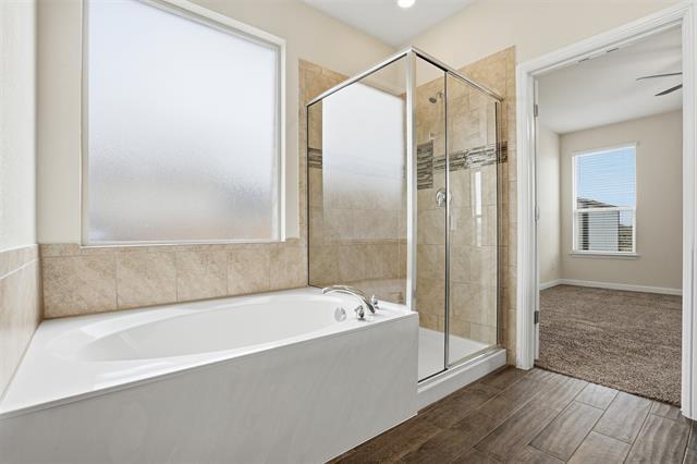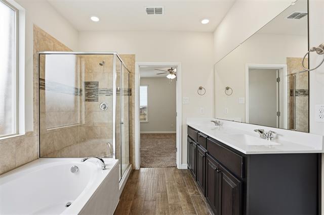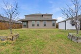 Welcome to this stunning 5-bedroom, 4-bathroom home! This property boasts a spacious open concept living, dining, and kitchen area, perfect for entertaining or simply enjoying a relaxed lifestyle. The kitchen is a chef's dream with a large island providing ample preparation space. The home features a huge second living area upstairs, offering plenty of room for everyone. The primary bedroom is conveniently located on the first floor with ensuite featuring dual sinks, garden tub, separate shower and large walk-in closet. A second bedroom and guest bath are also located on the first floor. Upstairs, you'll find three additional bedrooms and two full baths. The oversized garage and storage building provide plenty of space for all your storage needs. Outside, you'll find a large covered patio overlooking a beautiful greenbelt and community pond, creating a serene outdoor living space. With tons of space throughout, this home offers the perfect blend of comfort and convenience.