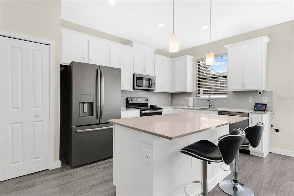 MOVE IN READY! Stunning 3-bedroom,2.5-bath townhome (unfurnished) with a 2-car garage and 1,912 sq ft of thoughtfully designed living space,located in the gated Vistas at ChampionsGate community. The open-concept first floor is filled with natural light and features wood-look tile flooring,a spacious living area,a dedicated dining space,and a convenient half bathroom. The gourmet kitchen features quartz countertops,a large center island,tile backsplash,42” cabinets with crown molding,a French-door refrigerator,and a spacious walk-in pantry—ideal for both entertaining and daily living. All carpet on the second floor has been replaced with vinyl flooring,offering a clean,modern look and easy maintenance throughout. Upstairs,the spacious primary suite offers a tray ceiling,walk-in closet,and a spa-inspired en-suite bathroom with dual vanities,soaking tub,separate glass shower,and private water closet. Two additional bedrooms,a full bathroom,and an upstairs laundry room complete the second floor. Enjoy a private outdoor space with no rear neighbors,perfect for relaxing and unwinding. Community amenities include two resort-style clubhouses. The Vistas Club offers a heated pool,fitness center,golf simulator,sauna,game room,and catering kitchen. Residents also have access to the Oasis Club featuring a water slide,lazy river,splash pad,movie theater,restaurant,bar,sports field,and more. HOA fees include cable TV,high-speed internet,exterior maintenance,grounds care,pest control,trash service,and access to all recreational amenities. Conveniently located near I-4,Hwy 27,and US-192,with easy access to Disney,golf courses,shopping,dining,and top Orlando attractions. Close to highly rated schools and within driving distance to both Florida coasts. Please note: Vistas at ChampionsGate is zoned for residential use only; short-term rentals are not permitted. Rent includes lawn care. MLS# O6381872