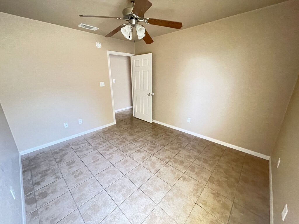 View 360 Virtual Tour: This 3-bedroom, 2-bath duplex features ceramic tile flooring throughout for easy upkeep and a clean, modern feel. Ceiling fans are installed in the living spaces and all bedrooms for added comfort. The kitchen includes traditional white appliances and offers a functional layout for everyday cooking. Both bathrooms provide extra cabinet storage, giving you plenty of room to stay organized. A practical and well-designed home with comfort built into every room.