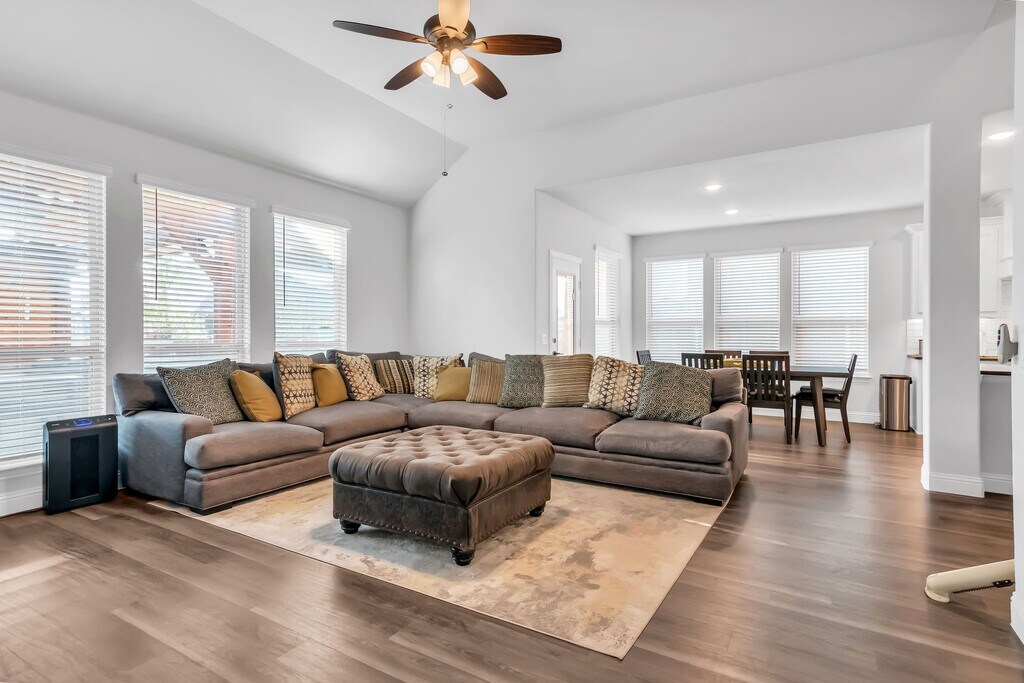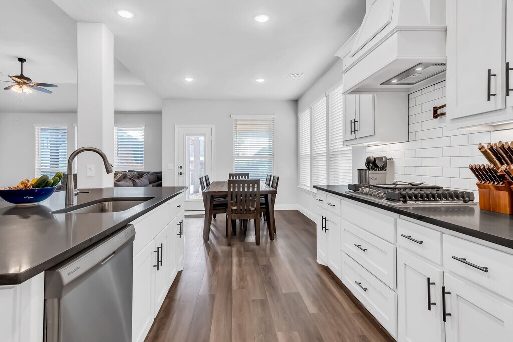 Outdoor Living Oasis in the heart of Justin, TX. 4 bedrooms, 2.5 bath, 3 living, 2 dining PLUS office has everything you will need, want and more. Kitchen has plenty of counter and cabinet space, SS appliances, gas range, walk in pantry, large fridge, and decorative lighting. 2 dining spaces along with the breakfast bar gives tons of space for hosting get togethers. Large main living, office, and primary bedroom on 1st floor. Primary bath has dual vanities, garden tub, walk-in shower, and huge closet. The 2nd floor is accessible to mobility impaired individuals with a stair lift. Upstairs comes with a large bonus room and media room plus 3 more bedrooms. Bathroom has dual sinks and walk-in shower. Did I say OUTDOOR LIVING OASIS? This home has it ALL. Full outdoor kitchen includes gas grill, range, refrigerator, trash bin, and 3 storage drawers. Wood burning large fire pit. 1 outdoor loveseat will be left for Tenant use.