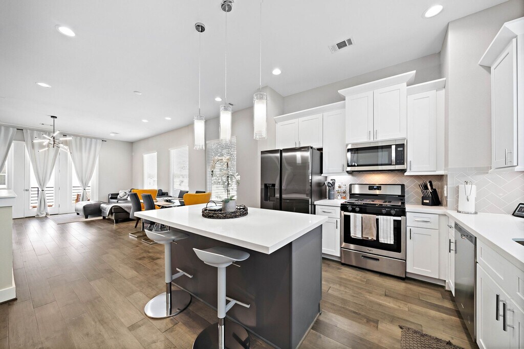 MOVE-IN READY! Beautiful 3 Bed / 3.5 Bath home with private yard in a gated Spring Branch community. This contemporary home features an open-concept layout with high ceilings,abundant natural light,and modern finishes throughout. The kitchen offers quartz countertops,soft-close cabinetry,and a large island with breakfast bar,flowing into the living area and private 2nd-floor wide balcony—perfect for morning coffee or relaxing evenings. Spacious primary suite fits king-size furniture and includes an oversized walk-in closet. Additional features include smart home upgrades,energy-efficient design,and TV/internet connections throughout. Private fenced yard,rare 28-ft wide street,ample guest parking,and a garage with epoxy-coated floors. Water,trash/sewer INCLUDED! Refrigerator,washer/dryer INCLUDED! Conveniently located minutes from Downtown,The Galleria,CityCentre,Memorial Mall and Energy Corridor area. Schedule your showing today! MLS# 71870019