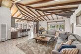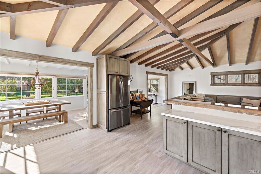 -Welcome to this unique opportunity, nestled on a spacious lot just a short stroll from T-Street Beach, this single story home welcomes you with an airy open-concept layout that invites an abundance of natural light with a large private yard engulfed with mature trees and landscape. A blend of modern design and rustic charm creates a warm and inviting atmosphere throughout. Inside, you'll find wide-plank luxury vinyl flooring, vaulted beamed ceilings, wood-cased windows, oversized barn doors, and an open concept sunroom that leads to the outdoor living areas, patio and yard. The kitchen is equipped with custom cabinetry, a large single-basin sink, high-end LG stainless steel appliances, and a peninsula with seating. The primary bedroom and bathroom offer a luxurious retreat with a quartz-topped dual vanity, a generously sized wood-framed mirror, a stylish frameless walk-in shower with patterned tile, and ample linen storage. Outside, the property features a spacious lawn for entertaining, relaxing, sunbathing or just to stroll around, a concrete patio with a built-in planters, and multiple areas for activities. Walk-through you secret bookshelf door onto the attached two-car garage with ample storage cabinets, a convenient laundry area, and updated plumbing and electrical systems throughout. This is your opportunity to walk to the beach, and explore what San Clemente has to offer. Conveniently located to Shops, Dinning, and Stores and easy for commuting. Listing provided by: Mitchel Bohi of Compass LA State License 2043345 Listing posted by Orange County [SYNDID 4137064 11072025]