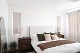 Experience resort-style living in Sterling Grove,one of Surprise,AZs premier gated golf communities. This beautifully designed Spanish-style home offers the perfect blend of privacy,comfort,and low-maintenance livingideal for a seasonal stay,executive rental,or long-term lease. Situated on a private lot with no homes directly across the street,this 3-bedroom,2-bath home features a flexible layout designed for both relaxation and functionality. The inviting front courtyard is surrounded by mature bougainvillea,lavender,and olive trees,creating a peaceful setting to enjoy your morning coffee or unwind in the evenings. Inside,the light-filled open floor plan includes a versatile third bedroom with French doors,perfect as a home office,den,or guest roomideal for remote work or extended stays. The primary suite offers backyard views and a private retreat with a walk-in closet,dual vanity with Taj Mahal marble,and walk-in shower. A split floor plan provides privacy,with the guest bedroom and bathroom located on the opposite side of the home. Step outside to a low-maintenance backyard oasis featuring turf landscaping,citrus trees,and a covered patioperfect for relaxing or entertaining year-round.
