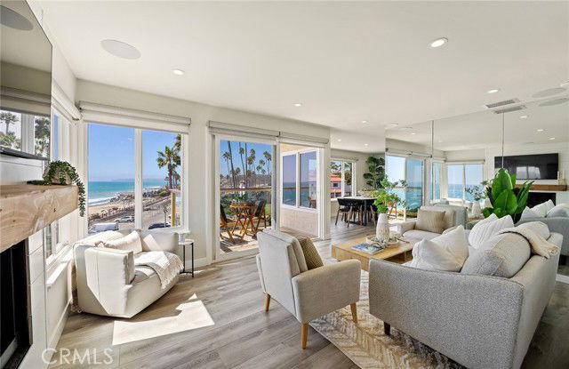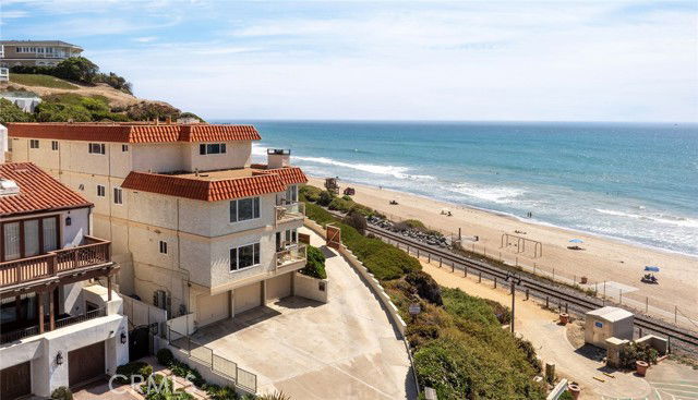 - Overlooking the ocean on the most iconic cul-de-sac location just across from the historic Ole Hanson Beach Club, this beachy condo offers incredible views! Reaching the distant Dana Headlands with year-round sunsets, crashing waves below & Catalina / SC Islands between. Elevated high above with 2 private garages, EV charger (only private 2-car garage) & rare parking for 3 in the driveway, the unit is secured by coded privacy gates. Ideally positioned on the front with only one shared wall (no one above or below) nearly every room has a major ocean view. Inside, a light-filled living space with mirrored walls reflects the ocean throughout. Featuring LVP wood-like flooring, glass-pane stair railing, new recessed lighting throughout, wired speakers & shiplap fireplace. An outdoor viewing deck off the living brings the outdoors into this remodeled space. A dedicated dining room with large picture windows flows seamlessly into the lightly-used kitchen. A very dialed-in kitchen offers all-new stainless appliances, newly-added coastal subway tile backsplash, crisp white shaker cabinetry with new hardware, polished Neolith kitchen counters & comfortable bar seating for three. A dedicated laundry room & pantry just off the kitchen accesses the main level powder bath. Upstairs leads to two bedrooms & bathrooms. The guest bathroom has recently been remodeled to create a walk-in shower. The ocean-view guest bedroom features a built-in Murphy bed for optionality & shares a relaxing second-level viewing deck accessed through slider doors on each side. In the primary, large picture windows frame the Pacific while mirrored doors refract the emerald ocean abound. The primary offers his & hers closets, access to the view deck, & a very dialed primary ensuite bathroom with walk-in shower. Newer upgrades include dual pane windows, new custom window treatments (automatic solar shades), recessed lighting throughout, ceiling fans, smooth-coated first level, remodeled guest bathroom, kitchen updates & new stainless appliances, & 2022 water heater, this unit is absolutely turnkey! Easy access to sandy beaches & 2.5 mile beach trail just below, Outlet Mall & Theaters, popular Life Time Fitness & Tennis Club, several great golf courses, world-class surfing, a short walk to the highly-anticipated Miramar Food Hall (opening soon) & nearby trendy restaurants & cafes. For those seeking a laidback beachy lifestyle, this is the opportunity! Listing provided by: Wach, Christian of Talavera Real Estate LA State License 02014153 Listing posted by Orange County [SYNDID 4150037 01202026]