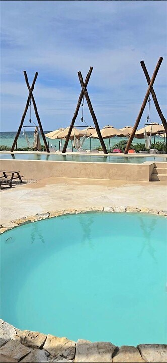A Townhouse & Paradise Nest in Telchac Puerto - Pools, Rooftop, and Private Beach Club in the Emerald Riviera, Gulf of Mexico. This stunning, brand-new beach townhouse comes fully furnished and is located less than 100 meters from the shore. It features a pool, private jacuzzi, 3 bedrooms, and 3.5 bathrooms with a rustic-modern decor, washer/dryer, and access to an exclusive private beach club. A true oasis in Yucatan, situated just one hour from Merida International Airport and 35 minutes from Progreso. The area is surrounded by archaeological sites, a spectacular lagoon, abundant wildlife, and breathtaking sunsets. It includes a rooftop with panoramic ocean views—experience paradise in the Emerald Riviera. Enjoy an unforgettable barbecue on your private gas grill, located on the balcony right next to the jacuzzi. From there, head straight up to the rooftop to be captivated by the finest panoramic views of the sea. Contact us for more details. MLS # A11948533