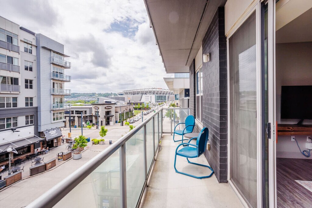 The advertised rate of $2,412/month is the lowest available price, based on a 30 day(s) stay with a move-in date of May 5, 2026. Rates vary depending on the duration of stay, season, and other parameters. For exact pricing and additional pricing components, please visit our website and enter your desired move-in and move-out dates. The rate is applicable when billed upfront; it can be higher if billed in multiple payments. Feel at home in this 2-bedroom apartment, ideally located in the beautiful Banks neighborhood with easy access to the city, river, and stadiums. This 2-bedroom apartment features inviting living areas, a fully equipped kitchen, and a bathroom complete with toiletries. Enjoy access to the outdoor pool and sundeck, outdoor grilling area, fitness center, in-unit washer and dryer, smart TV with streaming apps installed, TV in the living room, and complimentary coffee. There is limited parking available for $20 per day per car. Please provide advance notice to arrange parking. Nestled on the Cincinnati riverfront in the Banks neighborhood beside Great American Ballpark, Paul Brown Stadium, and The Andrew J. Brady ICON Music Center, this apartment delivers an energetic, diverse lifestyle at the heart of the action. A car isn’t necessary to explore the area, as you can find restaurants, entertainment, and activities within walking distance. Lime and Bird electric scooters are also available for rent in the area. You'll be staying in an area full of energy and charm, where the sounds of music, cheerful conversations, and the hum of the city may occasionally drift in, especially in the evenings. No outside guests are allowed without permission. There is a $500 penalty for removing smoke detectors. Guests must agree not to disturb neighbors at any time during the stay and must observe quiet hours from 9pm-7am each day. The apartment is proactively monitored with decibel sensors for compliance with this noise policy. Check-in is at 4 PM and check-out is at 11 AM, with a $75 per hour late fee. Smoking and parties are not permitted. [SI]