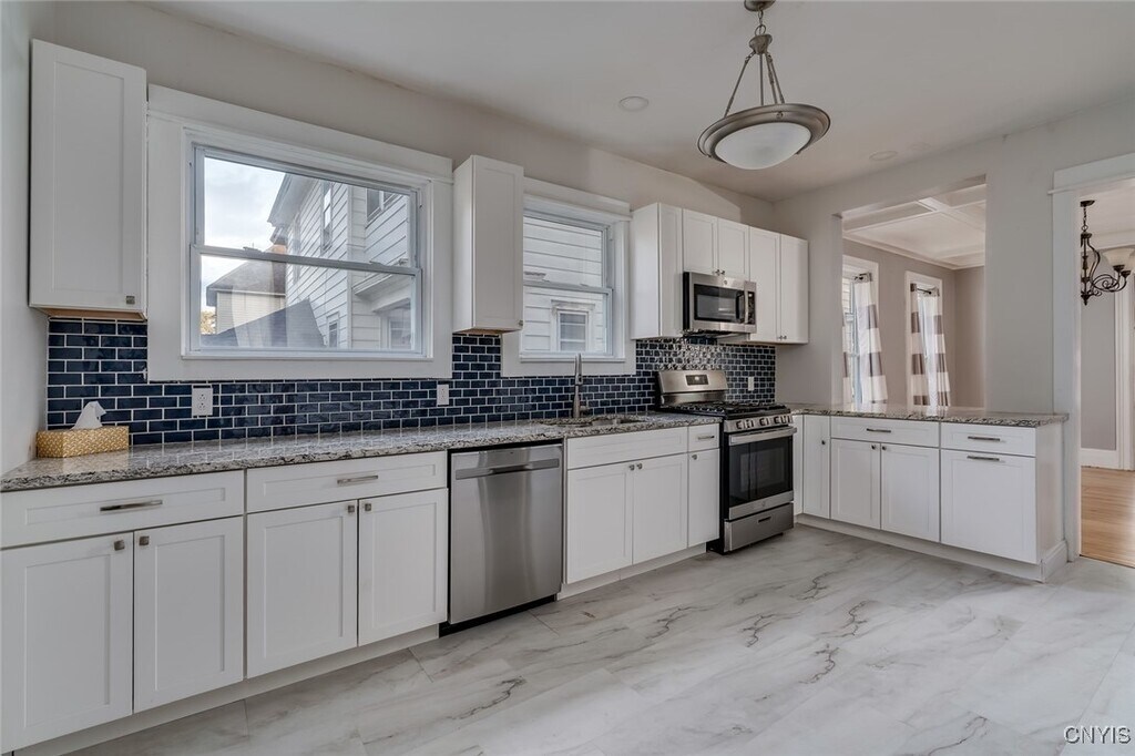 Step into timeless elegance with this beautifully updated 4-bedroom,2-bath home tucked away on a quiet street—just a short walk to the hospital. From the moment you arrive,you’ll be captivated by the home’s historic charm,ornate architecture,and stunning hardwood floors throughout. Large windows fill the home with natural light,enhancing the warmth and character of every room. The heart of the home is the jaw-dropping kitchen,thoughtfully renovated with updated cabinetry,a stylish backsplash,granite countertops,stainless steel appliances,and a spacious walk-in pantry—perfect for both daily living and entertaining. The bathrooms have been tastefully updated with modern finishes,offering one full bath on the main level and another upstairs. You’ll also love the extra space offered by the large attic and basement—ideal for storage or future expansion. Outside,enjoy a nice-sized backyard and your own garage. This home is the perfect blend of classic character and modern comfort. Truly a must-see—don’t miss your chance to rent this home! Water/sewer included in rent. All other utilities are tenants' responsibility. Owner may consider a pet upon approval and with a non-refundable pet fee. 1 year lease. No smoking inside the home. Apply today,no charge and set up a showing with your agent!