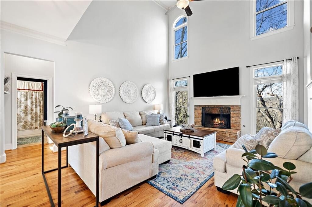Stunning Craftsman Home surrounded by seasonal mountain views. This beautifully updated 4 bedroom,3 full bathroom property offers the perfect blend of modern luxury and cozy rustic charm,nestled in the heart of the sought-after Lake Arrowhead subdivision. With fresh interior and exterior paint,this home is move-in ready and features countless upgrades throughout. Including a new Energy Star rated hybrid hot water heater and new main HVAC system. The spacious open kitchen is a chef’s dream,featuring high-end KitchenAid appliances,granite countertops,subway tile backsplash,under-cabinet lighting,a stained butcher block island with storage and a built-in wine fridge. Whether you’re hosting dinner parties or enjoying a quiet meal at home,this kitchen is the perfect place to entertain as well as relax. 10+ foot ceilings greet you throughout the main and upper level,with beautiful,detailed crown molding. The open foyer and living room make the space stand out with abundant natural light. The expansive primary suite offers a peaceful retreat with ample space including a seating area with windows galore,an ensuite featuring a tiled shower,soaking tub and double vanities-leading you into a massive 10x15 walk-in closet. The additional bedrooms are generous in size and full of natural light. Each of the three full bathrooms are thoughtfully designed,providing both convenience and style. Step outside to enjoy a tranquil setting amongst the canopy of hardwood trees and breathtaking seasonal mountain views from your private double decks. An unfinished daylight basement with 15 ft ceilings,exterior entry and fenced in side yard offer plenty of opportunities to put your stamp on an already spacious home. Unwind in Lake Arrowhead's numerous amenities,including an 18-hole championship golf course,clubhouse with restaurant,two pools,park,playground,pickleball,tennis,basketball,sand volleyball courts,dog park,on-site RV/ Boat storage and over 18 miles of walking trails. In addition,an on-site activities director hosts multiple holiday events and concerts throughout the year. For outdoor enthusiasts the 540-acre spring-fed lake is named one of Georgia's cleanest lakes. Lake Arrowhead is a paradise offering fishing,boating,swimming and tranquil spots to relax. 24 hour gated security on site. Schedule a showing today and experience the charm and luxury of this remarkable home in one of Georgia's best kept secrets. Seller will pay HOA dues. Tenant is responsible for other utilities. Pets allowed on a case by case basis. Possible option for a short term lease or to renew for additional 6 month terms. Lease Purchase available.