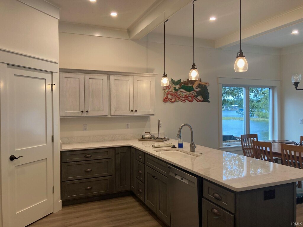 BONUS: The owner will pay utilities for a total rent price of $1800/m if tenant signs the lease by November 15 with immediate move in. This beautiful, new 2-bedroom, 2-bath home with a 2-car attached garage on Lake Webster is available through May 31, 2026. House includes a large 38'x12' deck that overlooks Lake Webster that is an all-sports lake. This home offers convenience of town living all within walking distance. Open concept living room/dining room and kitchen with large windows overlooking the lake. Primary suite and 2nd bedroom and full bath are on the main level. (Basement and upstairs are not available to rent.) Total living space is 1,444 sq ft. Enjoy this home through fall, winter and spring. All appliances are included: 5-burner gas range/oven, microwave, dishwasher, refrigerator and stack washer/dryer. No smoking or pets. Rent is $1,800 per month.