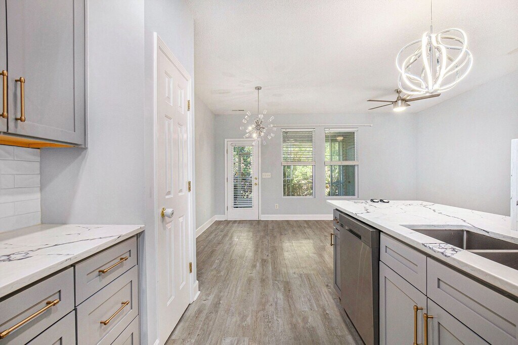 Welcome to your dream home in the highly sought-after Wellington community. This stunning 3-bedroom, 3-bath townhouse offers the perfect blend of modern upgrades, comfort, and coastal charm. Recently renovated and thoughtfully designed, the home features a convenient first floor bedroom with a spacious walk-in closet and full bathroom, offering flexible use as a guest suite or the option to create a home officer or private workspace to suit your lifestyle. The bright, open living area showcases luxury vinyl plank flooring and a stylish ceiling fan, flowing seamlessly into a dedicated dining area, creating a warm and inviting space for relaxing or entertaining. The fully updated kitchen is a true highlight, featuring sleek stainless-steel appliances and elegant marble countertops which makes it perfect for cooking, hosting, and gathering with family and friends. Upstairs, you'll find two generously sized bedrooms, each with ample closet space and its own full bathroom, offering privacy and flexibility for family or guests. Step outside to the spacious screened-in porch which makes for an ideal spot to enjoy morning coffee or unwind in the evenings with peaceful, private views. Residents of the Wellington community enjoy access to a sparkling community pool, perfect for sunny coastal days. Conveniently located just off Palmetto Pointe Blvd, this home is minutes from Market Common, Myrtle Beach Airport, Coastal Grand Mall, the beach, top rated golf courses, dining, entertainment, and more. It is also minutes from the new Trader Joe's and Sayebrook shopping! The property is also situated within a strong school district, including Lakewood Elementary & Socastee Middle School. This home truly checks all boxes! **Note some living spaces are staged. Furniture is not included in this rental**