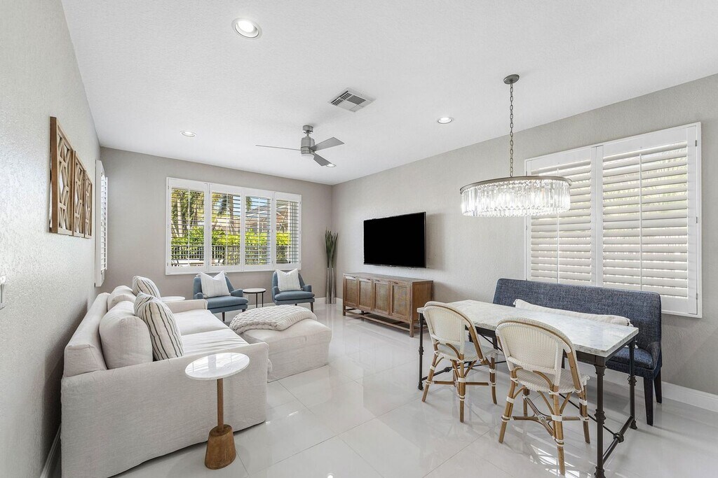 Courtesy of B.S.U. Realty Corp. Welcome to your fully furnished dream home! This exquisitely renovated luxury residence offers an unparalleled living experience, perfectly blending modern elegance with comfort. With five spacious bedrooms and four contemporary bathrooms, this property is designed for both relaxation and entertaining. Experience the sophisticated ambiance created by sleek porcelain flooring on the first floor and waterproof laminate flooring throughout the second floor. A custom glass staircase adds a touch of contemporary flair to the overall design. Custom chef's kitchen, equipped with state-of-the-art appliances, sleek cabinetry, and ample counter space, making it ideal for culinary enthusiasts and family gatherings alike. Step outside to your private backyard sanctuary, which boasts a brand-new saltwater pool and jacuzzi, perfect for relaxation or entertaining guests. The area is beautifully surrounded by fresh brick pavers and fully enclosed for your privacy. This home is equipped with accordion shutters for added safety during storms, as well as a spacious two-and-a-half car garage that includes an extra space for a golf cart. Enjoy the gated Atlantis Community with low HOA fees that cover essential services such as cable, landscaping, and security. 2 golf courses and minutes from I-95. Schedule your viewing today and take the first step toward living your best life in this stunning luxury residence!