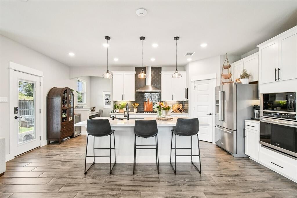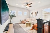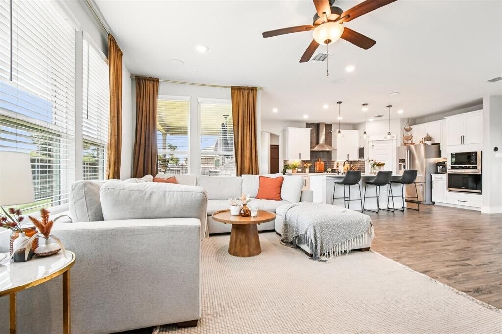 Discover this beautifully maintained and thoughtfully designed home nestled in the highly desired Sun Field community of Buda. This exceptional property offers an ideal layout with all main living spaces and a dedicated office gracefully positioned on the ground floor, while three bedrooms and two full bathrooms create a peaceful retreat on the second level. The heart of the home showcases an open-concept design where living room, dining room, and kitchen flow seamlessly together, enhanced by beautiful finishes throughout. The gourmet kitchen features built-in oven and microwave, gas range with vent hood, and stunning stone countertops extending to the large island with breakfast bar. Abundant counter and cabinet space maximizes functionality while wonderful natural light floods the entire space. Upstairs, a spacious game room serves as the perfect gathering spot, flanked by well-appointed bedrooms. The generous primary suite becomes a true sanctuary with its gorgeous spa-like en suite featuring an oversized walk-in shower, double vanity, and large walk-in closet. The covered patio provides an ideal vantage point overlooking the spacious backyard, ready for personalized amenities and outdoor enjoyment. Living in Sun Field means access to community perks including a refreshing pool, playgrounds, parks, and numerous other recreational offerings. This home perfectly balances sophisticated design with comfortable living in one of Buda's most sought-after neighborhoods.