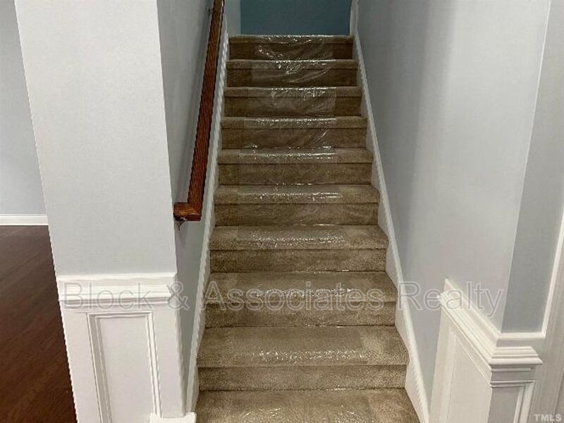 Stunning 5 bedroom, 3.5 bath home in the Hunters Woods subdivision in Apex! Formal living rm & dining rm. Hardwoods on main level. Spacious eat in kitchen w/ butlers pantry. SS appliances, huge island, quartz countertops & tons of cabinet space. Large family rm w/ gas fireplace. 1st floor bedroom w/ full bath. All bedrooms spacious, primary suite w/ trey ceiling. Loft area & laundry on 2nd level. Washer/Dryer included. Screen porch & patio for relaxing. 2 car garage. Lawn maintenance included! Tesla car charging outlet. Small pets case by case. Please see the blockrealty website for the most accurate property details, photos, and application.
