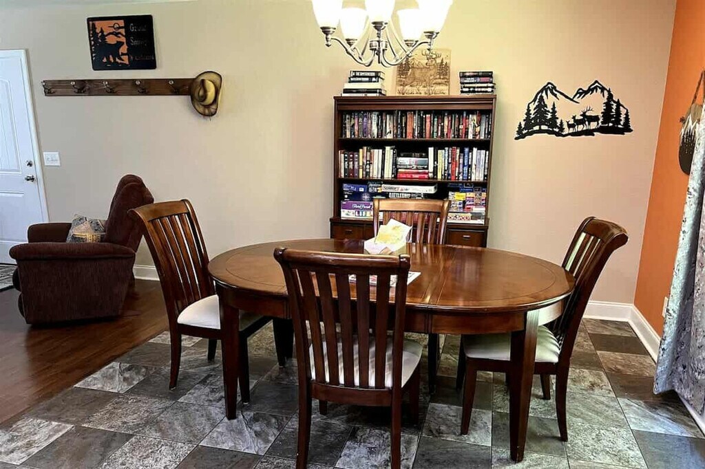 Escape to Deer Ridge Retreat, where peaceful trails, fresh mountain air, and stunning views create the perfect backdrop for rest and renewal. This 3-bedroom, 2-bathroom retreat is nestled in the heart of the Smoky Mountains, offering a serene escape from the hustle and bustle of everyday life. Watch for deer as they wander into the backyard, adding a touch of nature to your stay. Relax and enjoy playing games around the dining room table in this charming retreat. The cozy atmosphere and thoughtful design make it an ideal space for unwinding and spending quality time with loved ones. This cabin is situated in a quiet neighborhood, paved all the way to the cabin, making it perfect for bikers and low-clearance cars. While there is no Uber or Lyft in the area, the peaceful surroundings and natural beauty more than make up for it. You will self-check in and we are available for any questions you may have. [SI]