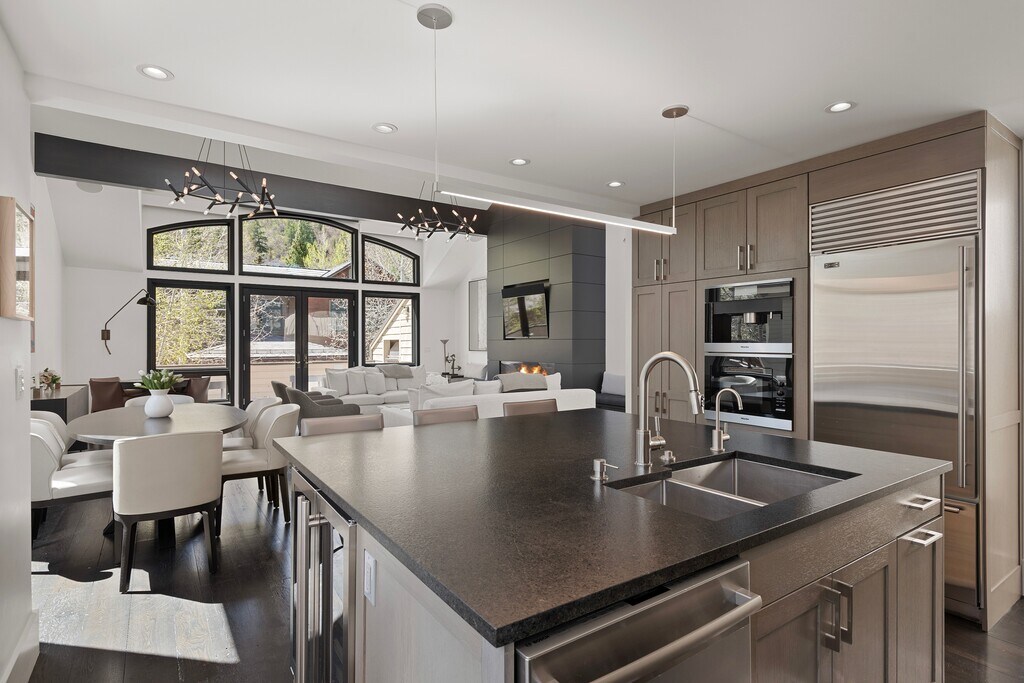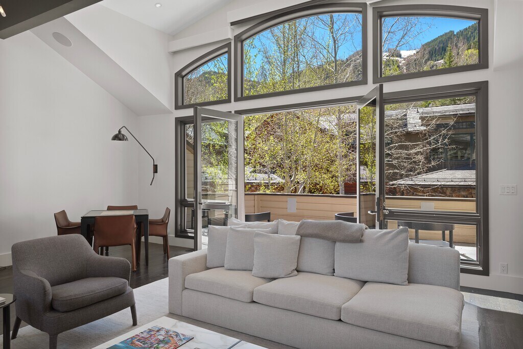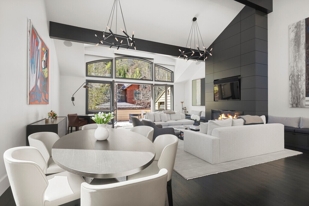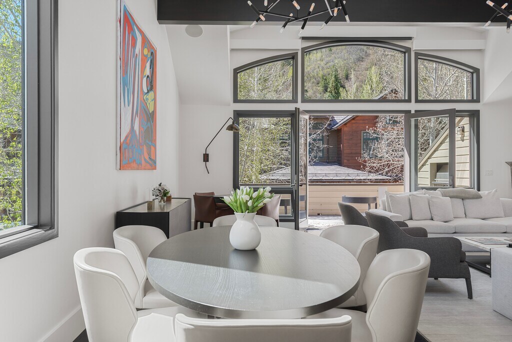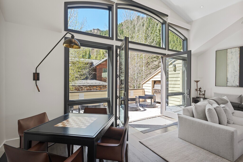Experience the best of Aspen living in this stunning luxury home located just steps from Aspen's finest restaurants, shopping, galleries and many cultural offerings. Designed with elegance and comfort in mind, this beautifully appointed residence features soaring cathedral ceilings in the living room, creating a bright and open space perfect for relaxing or entertaining. A cozy gas fireplace adds warmth and ambiance, while the balcony offers breathtaking mountain views. A gourmet chef's kitchen, top-of-the-line appliances, and central air conditioning combine to make this home an exceptional retreat. The home includes four spacious ensuite bedrooms, ensuring privacy and comfort for every guest, along with an additional powder room for convenience. On the lower level there is a second private outdoor patio, complete with a large hot-tub, perfect for a cool summer evening or after a day on the slopes. With its prime location, this exceptional Aspen retreat offers the perfect blend of luxury, style, and convenience.