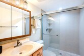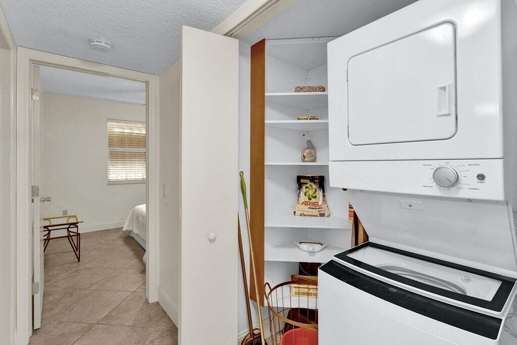 Welcome to your haven at Waterside Village! This well-lit and airy second-floor unit is now available for a six-month rental. It offers two spacious bedrooms with ample closet space and abundant natural light. Additionally, you'll discover two recently updated bathrooms and a chef's dream kitchen. This culinary space is complete with custom wood cabinets, elegant granite countertops, and brand-new stainless steel appliances, seamlessly flowing into the roomy living area. The condo boasts tile flooring throughout, ensuring a carpet-free living environment. Practical amenities such as a washer/dryer, accordion shutters, and first-floor storage space are at your disposal. Step out onto the covered private patio, perfect for enjoying cocktails or your morning coffee.