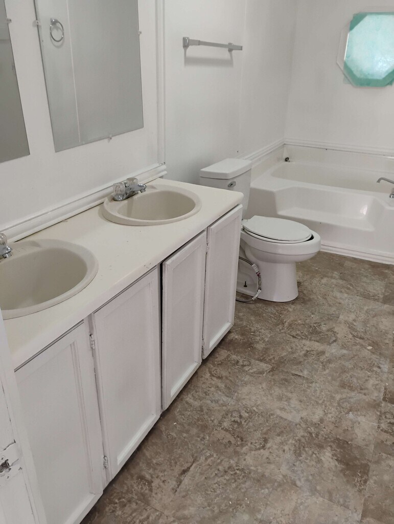 A huge 4 bedroom, 2 bathroom home in Mabank, Texas. 2 lots, big trees, and a huge storage shed. It's got new paint, new carpet and more! Full size washer & dryer connection. It's in a neighborhood with a community pool & a boat ramp. 2000 sq feet (estimated).