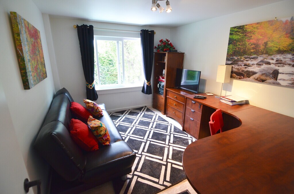 Top Floor private suite with private entrance in family home. Fully furnished. All utilities included. In-suite washer and dryer Second room for office, TV with pull out couch. Ideal for a couple. Not child-safe. One parking spot on property More street parking also available. Gas BBQ on private deck. There is a dog on the main floor. Please discuss your pet to ensure compatibility