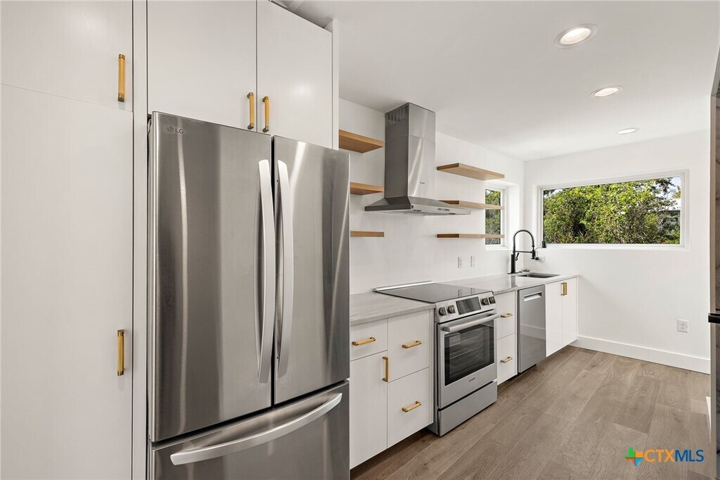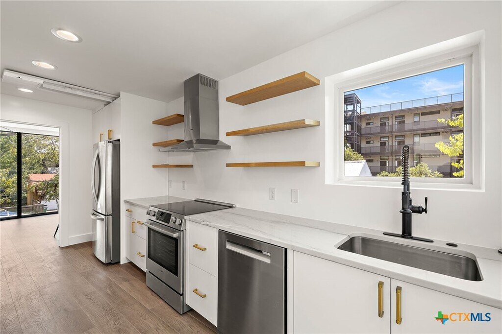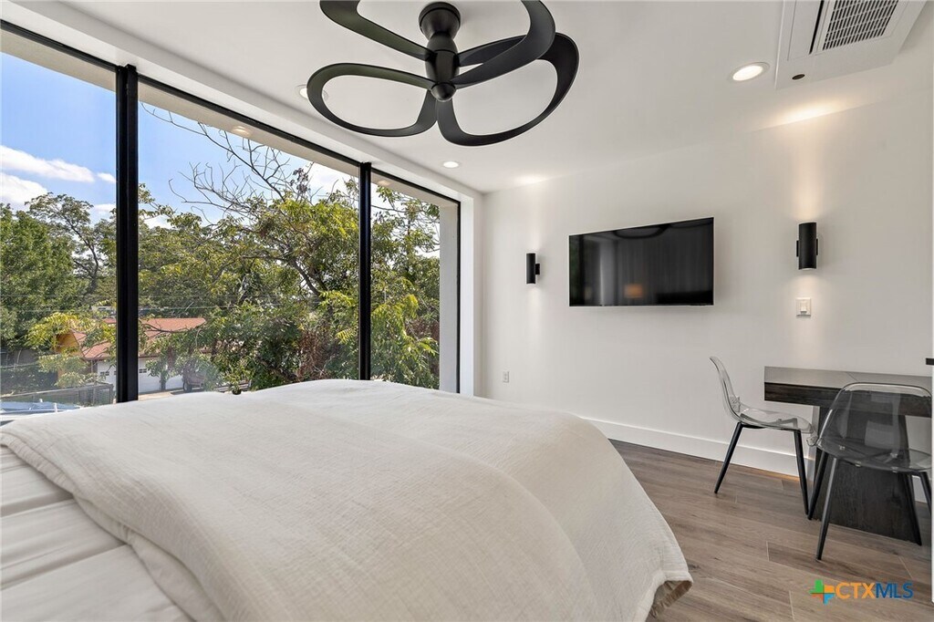 Brand-new construction in central Austin! The first floor features a half bathroom with brand-new stackable washer/dryer,and central HVAC controlled garage/flex space. The second floor includes the primary bedroom,full bathroom,and kitchen with top-of-the line appliances. From the 2nd floor,head upstairs to a spacious rooftop terrace with private hot tub with city views for entertaining. High-speed internet for one year is included along with TVs mounted in the bedroom & flex space. Home can be leased furnished or unfurnished,at your preference. The downstairs side patio is now enclosed to make the home a continuous living space.
