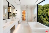 Exceptional design meets refined luxury in this brand-new Beverly Hills architectural masterpiece, set behind privacy gates on a secluded promontory with truly explosive panoramic city-to-ocean views offering the rare combination of dramatic vistas and effortless convenience just moments from the Beverly Hills Hotel and the heart of the city. Created by renowned architect Paul McClean with interiors by Waldo Fernandez, this one-of-a-kind residence is a study in meticulous craftsmanship and elevated modern warmth. Behind the gates, twin marble waterfalls frame a dramatic entry, leading to illuminated travertine paths and a striking glass bridge that reveals the home's stunning three-level design. Walls of glass, soaring wood-paneled ceilings, and contrasting accents create a seamless indoor-outdoor flow reminiscent of the world's finest private resorts. An elevator services all levels, enhancing ease and livability throughout. The main level features formal living and dining areas, a kitchen as well as a chef's kitchen with Miele appliances, wine cellar, and private office. Pocketing glass doors open to an expansive outdoor oasis with a full-length infinity pool, jacuzzi, baja ledge, and multiple dining and lounge areas overlooking the skyline ideal for hosting events, parties, and effortless gatherings with quick access for Uber and pick-ups. The upper level is dedicated to a serene primary retreat with a terrace, fireplace, spa-like bath, and dual closets, as well as a secondary bedroom. Below, a dramatic atrium anchors a complete entertainment and wellness floor with guest suite, gym, sauna, steam room, massage room, onyx bar, and a state-of-the-art private home theater - creating the ultimate vacation-at-home" lifestyle. The home offers exceptional gated parking capacity, including an oversized garage and additional space within the motor court, providing rare flexibility for events, staff, and guest arrivals, all complemented by generous street frontage for convenient overflow parking. A rare opportunity to own a true trophy property offering unparalleled design, privacy, resort-level amenities, and unmatched proximity to the very best of Beverly Hills." MLS# 26643523