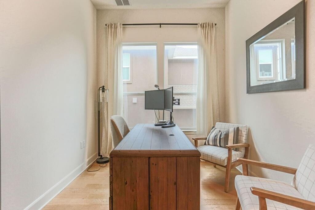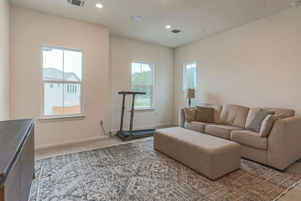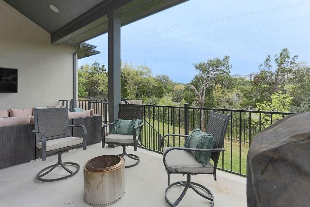 Welcome to your dream home in the prestigious Retreat at Steiner Ranch. Featuring Lennar’s highly sought-after Vazzano floor plan, this two-story residence with a two-car garage offers 4 bedrooms and 3 baths. On the main level, you’ll find the primary suite with a luxurious bathroom and walk-in closet, a guest bedroom with full bath, a private study, and a spacious formal dining room—providing comfort and convenience all on one floor. Caramel-toned engineered wood flooring runs through the main living areas. The kitchen shines with expansive countertops, upgraded stainless-steel appliances, and abundant cabinetry—perfect for the home chef. Large windows throughout the living spaces, bay windows in the primary suite, and natural light at every turn enhance the home’s inviting atmosphere. Upstairs, enjoy two bedrooms and a full bath, plus a versatile game room and a generous media room, creating plenty of space for fun and relaxation. Builder upgrades include speakers in the living room, game room, and back porch, pre-wiring for 5.1 surround sound and a projector in the media room, EV charging capability in the garage, and a whole-home Ring security system. Backing to more than 200 acres of greenbelt, this home offers both privacy and serene views of nature. The backyard provides ample space with pool potential, giving you the opportunity to create your personal outdoor retreat. Ownership includes membership in two homeowners’ associations, ensuring an exceptional community lifestyle. The Master HOA grants access to three swimming pools, tennis courts, a lake club with boat docks, and beautifully maintained common areas. The Retreat at Steiner Ranch HOA manages neighborhood amenities, including landscaping, street lighting, and the signature fountain that welcomes you home.
