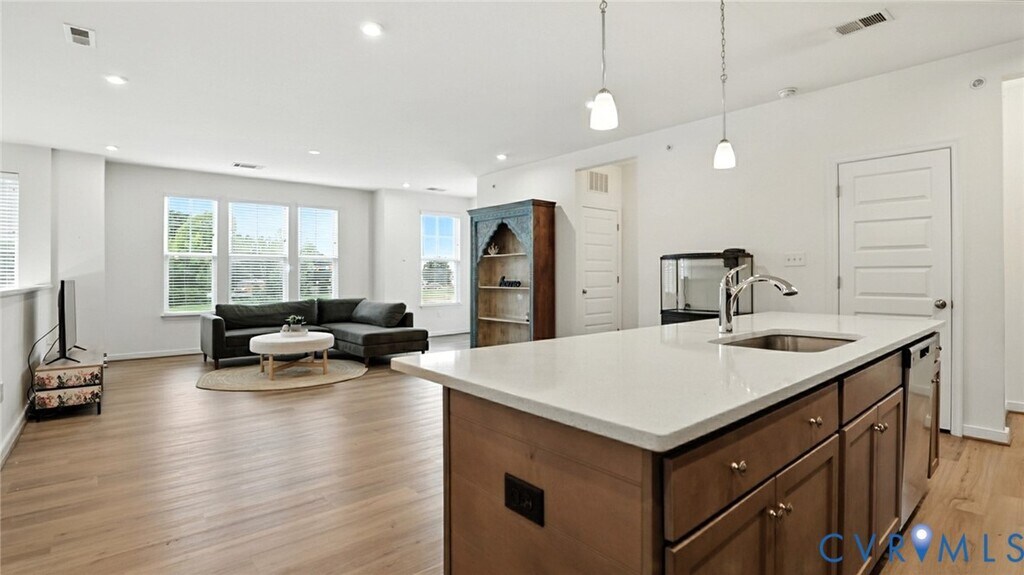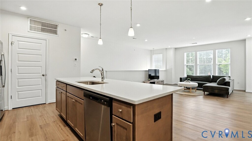 Move-in Ready Corner Condo in The Pointe at Twin Hickory! This pristine 2023-built corner unit condo offering modern finishes,low-maintenance living,and a prime location in the highly desirable Twin Hickory community. This bright and open 2-bedroom,2-bath home features 9??? ceilings,a spacious layout,and quality finishes throughout. The kitchen features large quartz island,42??? cabinets,gas cooking,backsplash,stainless steel appliances,pendant lighting,and recessed lights. The kitchen flows seamlessly into the sunlit family room that opens to a private balcony,perfect for relaxing or sip your morning coffee. Enjoy LVP flooring in the family room and kitchen,while both bedrooms offer plush carpet for added comfort. The primary suite includes a walk-in closet and a luxury en-suite bath with double vanity,a standing tiled shower,and tile flooring. The second full bath also features tasteful tilework. Hardwood staircase,ceiling fan rough-ins are included in the family room and both bedrooms,and a tankless water heater provides added efficiency. Residents enjoy access to top-tier amenities including a clubhouse,pool,tennis courts,walking trails,and more. Top rated schools. Location is unbeatable with easy access to major highways and just minutes from Short Pump Mall,shopping,dining,entertainment,and the popular Short Pump pickleball courts.