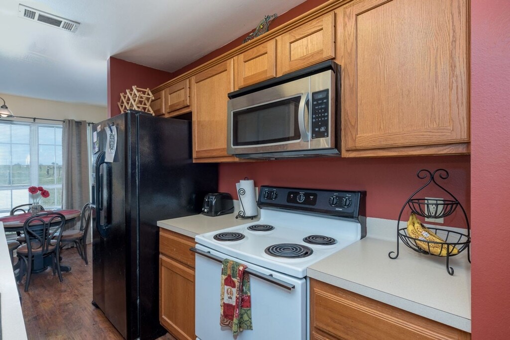 Home features granite countertops, all appliances, large yard for horse turnout and easy access to the Flying Ace horse barn and arena! Conveniently located close to Highway 6. We also provide elite equine services with our fifty-five stall barn, outdoor arena, large cedar stay round pen and more! Call today for more information on horse boarding prices or showing inquiries! Photos are of a similar unit. Unit has just received new countertops and sinks.