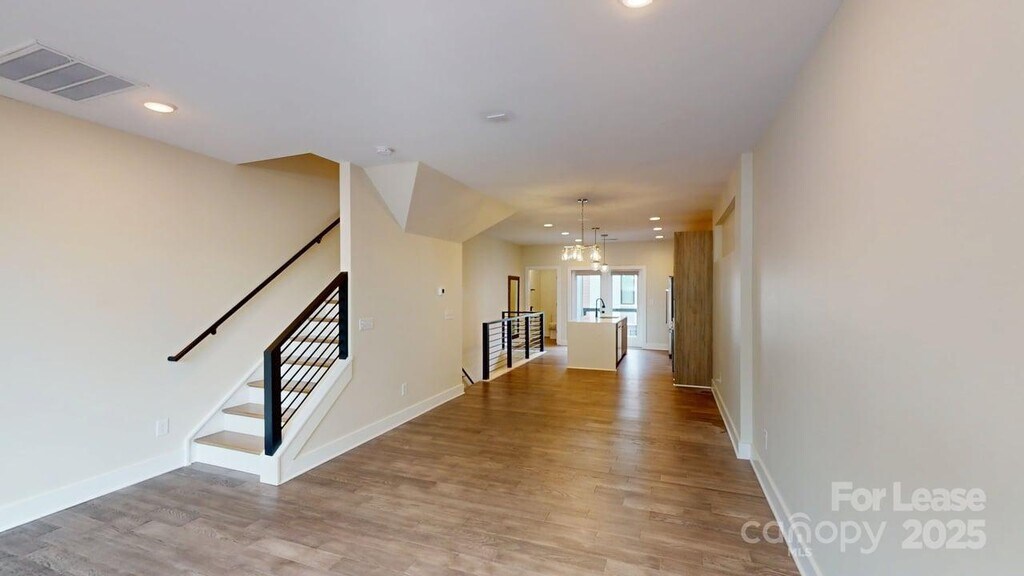 Stunning South End modern townhome just 2.5 miles from Bank of America Stadium and a mile from the heart of South End. The rare tandem two-car garage is a great find in this area. Step inside to an open floor plan designed for entertaining,featuring a sleek kitchen with elite stainless-steel appliances,a quartz island with a deep farmhouse sink,and direct access to the first of two balconies—perfect for morning coffee or a good book. The spacious living area flows seamlessly to the third level,where you’ll find a bright primary suite with a double-vanity bathroom and a deep walk-in closet offering plenty of shared space. Across the hall,the secondary bedroom includes a private bath and generous closet space,with a washer and dryer conveniently tucked behind farmhouse sliding doors. Upstairs,the fourth-level bedroom and full bath open to a large rooftop terrace with skyline views—ideal for relaxing or hosting. All just steps from South End’s top restaurants,breweries,and shops.