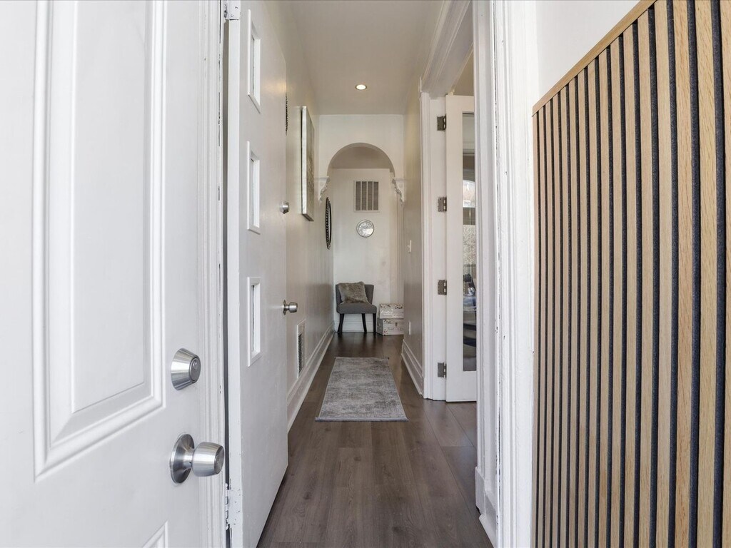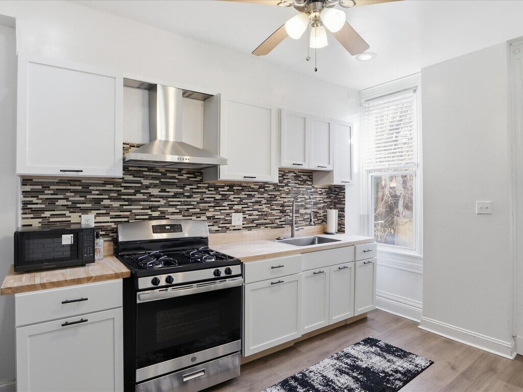 Discover this well-appointed charming 4-bedroom, 2.5-bath home in the heart of Baltimore, featuring high ceilings, spacious bedrooms and abundant natural light throughout. Enjoy original architectural features like archways, a service stairway, transom windows, intricate grates, and mantles combined with modern touches like luxury vinyl flooring, butcher block counters, and stainless steel appliances with gas cooking. Large closets provide ample storage, and an in-unit clothes washer and dryer add everyday convenience. Minutes from everything Baltimore has to offer, three beautifully finished floors of living space, ample storage, and more make this home a must see and a must move in property!