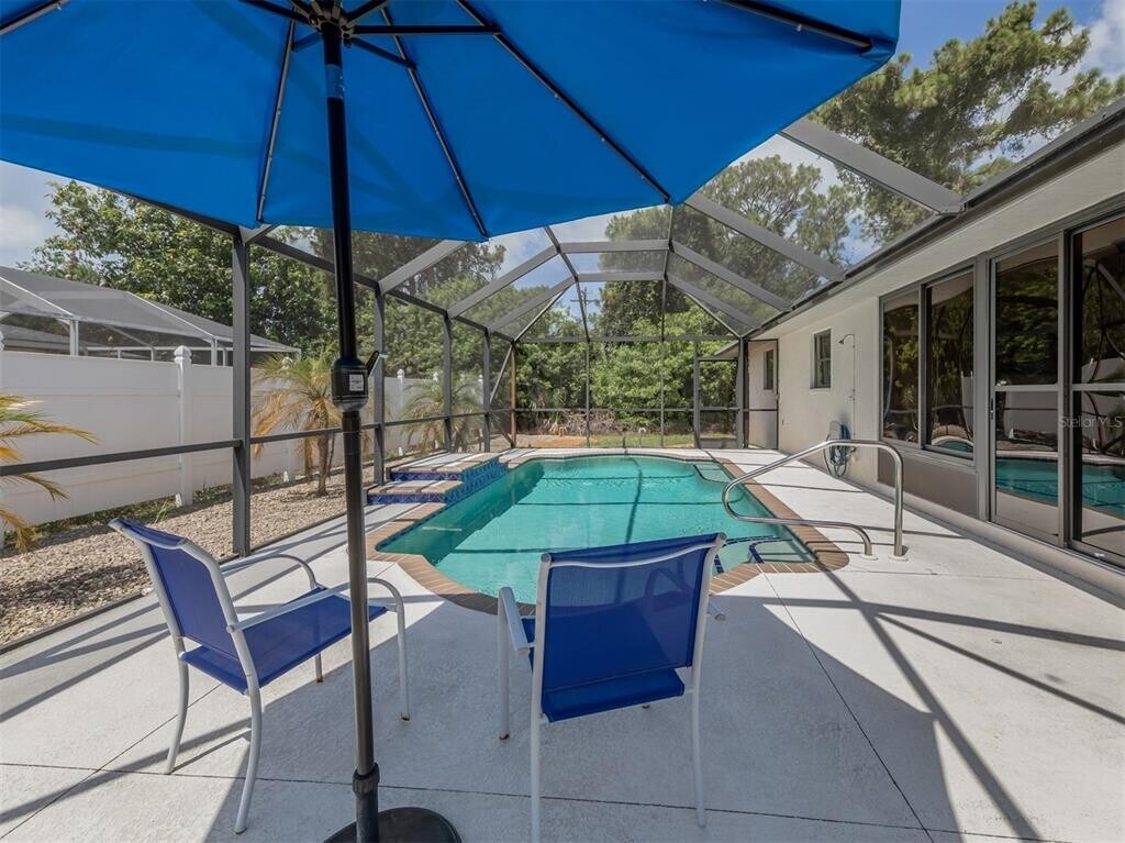Looking for a private,quiet cozy vacation retreat in South Venice? Look no further! This beauty is for you. This charming 2 bedroom,2 bath,2 car garage split home has a spacious kitchen with lots of counter space,an open living room that flows to an enclosed screened lanai and a gorgeous sun kissed pool. The back yard has a privacy fence ensuring your serenity while you and your guests enjoy the maximum in Florida outdoor living. South Venice = close to everything!! Perfect location: Shopping,dining,I-75,some of the best beaches in the world,walking trails,Shamrock Park,The Legacy Trail. You will arrange your life around the daily trip to this beach! This is your ticket to paradise! MLS# N6132170