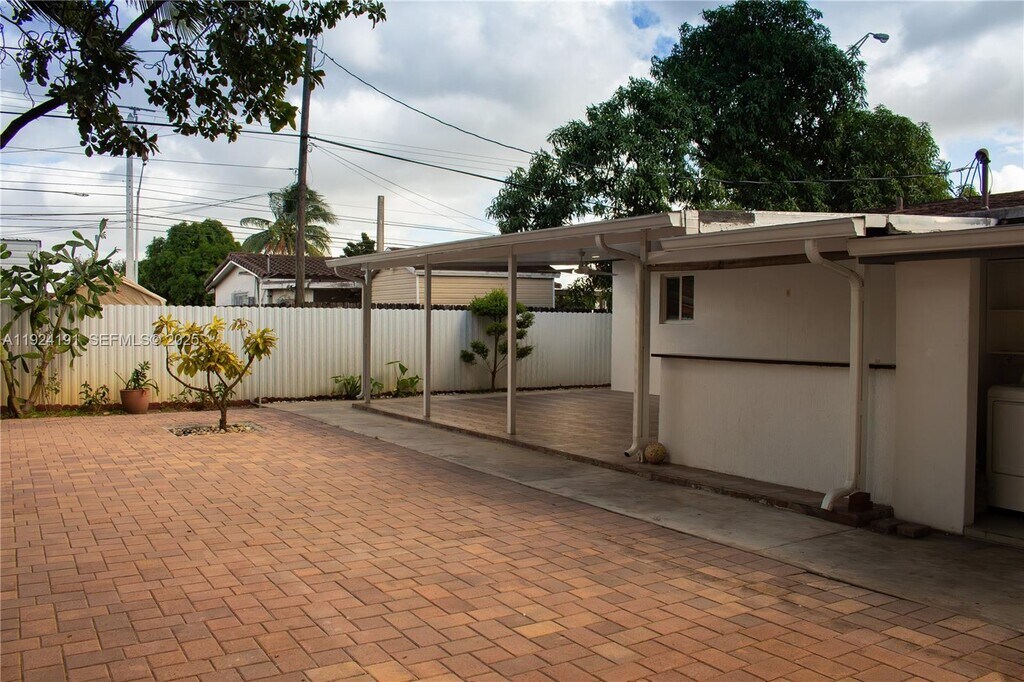 Beautifully remodeled 3 bedroom 1.5 bathroom home in the heart of Hialeah! This move in ready residence features porcelain tile floors throughout, crown molding, impact windows, recessed LED lighting, and ceiling fans in the bedrooms! The modern kitchen offers high gloss laminate countertops, white shaker cabinetry, stainless steel appliances, a dishwasher, and a designer glass mosaic backsplash with a spacious peninsula ideal for casual dining! The spa inspired bathroom includes a luxury walk in glass shower, rainfall shower head, matte black fixtures, LED lighted mirror, and custom shelving. All bedrooms include built in closets and excellent natural light. Enjoy a fully paved private backyard with covered patio, pergola lounge area, and an outdoor kitchen equipped with a gas stove that's perfect for entertaining! Additional features include an outdoor laundry area and parking for multiple vehicles. All utilities are included in the rent: water, electricity, and waste. Only first month's rent and one security deposit required. No HOA! Conveniently located near Walker Park, schools, shopping, dining, and major highways.