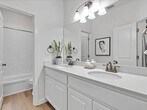 Beautifully designed 5-bedroom, 2.5-bath home nestled in the highly desirable Steiner Ranch community in Austin, TX. Built in 2021, this spacious and elegant home offers approximately 2,624 square feet of living space with an open-concept layout that blends style, comfort, and functionality. The main floor features a living space with lots of natural light, soaring ceilings, a dedicated study, and a spacious family room. The gourmet kitchen boasts quartz countertops, a large center island with breakfast bar, sleek white cabinetry, and wood-look tile flooring that is perfect for both daily living and entertaining. The luxurious owner’s suite offers a peaceful retreat with a bay window, vaulted tray ceiling, and a spa-like ensuite bathroom featuring dual shower heads and a frameless Euro-glass shower. Upstairs, you'll find additional 3 bedrooms and a large game room, offering plenty of space for relaxation or play. Enjoy quiet mornings or evening gatherings on the oversized covered patio that backs to a serene greenbelt, providing privacy and a connection to nature. Located in the heart of Steiner Ranch, this home offers access to top-rated Leander ISD schools, multiple pools, parks, sport courts, trails, and proximity to Lake Austin and Lake Travis. A perfect combination of modern living and outdoor lifestyle. This home is move-in ready and waiting for you!