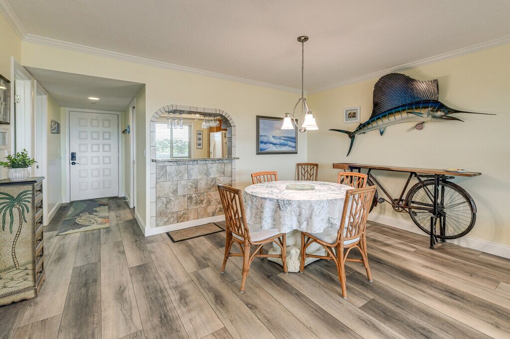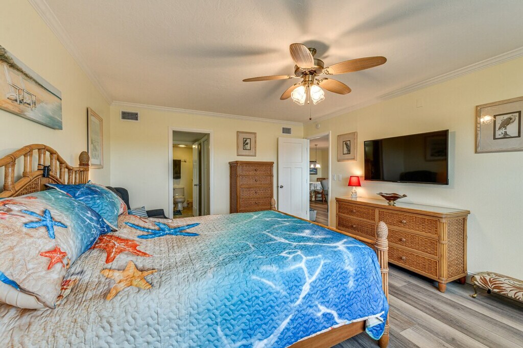The advertised rate of $3,038/month is the lowest available price, based on a 1 month(s) stay with a move-in date of September 8, 2026. Rates vary depending on the duration of stay, season, and other parameters. For exact pricing and additional pricing components, please visit our website and enter your desired move-in and move-out dates. The rate is applicable when billed upfront; it can be higher if billed in multiple payments. Experience ultimate relaxation in this picture-perfect 2-bedroom, 2-bath condo in beautiful Bradenton. This single-story condo offers step-free access via elevator, so feel at home. This beachy abode features a smart TV, an electric fireplace, board games and books, a sunroom, dining tables, and en-suite bathrooms. The kitchen is equipped with a dishwasher, refrigerator, stove/oven, microwave, Keurig pod/drip coffee maker (K-Cups provided), toaster, blender, Crockpot, cooking basics, spices, dishware and flatware, trash bags and paper towels, and a high chair. Beach and pool gear are provided, and in-unit laundry is available. Central heating and A/C are included, as are complimentary toiletries, a hair dryer, towels and linens, pool towels, 2 beach umbrellas, pool floaties, a beach chair, and a cooler. Guests have access to the heated outdoor pool (depth 3'-6.5'), hot tub, fitness center, tennis courts, and gas grills. Community garage parking is available for 1 vehicle. A liability waiver may be required in order to use the private boat slip. Spend your days soaking up the Florida sunshine at the community pool, grab your towels and spread out on the sands of Bradenton Beach, or head to Anna Maria Island, ideally located less than 3 miles away. When you make your way back, unwind in the sunroom with panoramic views of Palma Sola Bay. Guests must be at least 25 years old to book. No pets are allowed. No events, parties, or large gatherings are permitted. [SI]