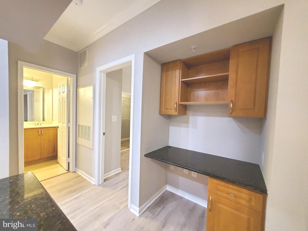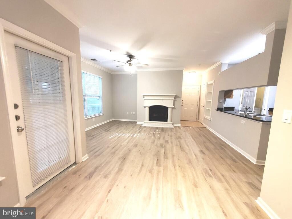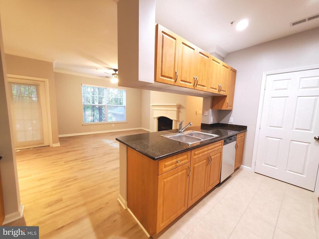 Wonderful 1 bedroom & 1-full bath condo in the fantastic gated community of Legato Corner. Beautiful wood floors through out. New ceiling fans and blinds. New recessed lights in kitchen area. Great open floor plan with 832 sq ft of spaces. Great corner unit with loads of windows and natural lights. Living room with cozy gas fireplace. Dining room steps out to huge wrap around covered balcony with private wooded views. Great kitchen with stainless steel appliances and granite counter tops. Separate laundry room with full size washer/dryer and plenty of extra storage. Spacious bedroom with deep walk-in closet. Full bath with dual vanity, over sized soaking tub with shower and linen closet. Built-in office with desk and bookshelves. Large storage (5' L x 5.5 W x 9' H) adjacent to the unit door. 1 reserved parking spot and many visitor spots. Private gated community with great amenities including clubhouse, pool and fitness center. Short walk to bus stop. Just minutes to Fairfax Corner, Fair Oaks Mall, Government Center. Commuter friendly location is close to I-66, Rt. 29 and Rt. 50.