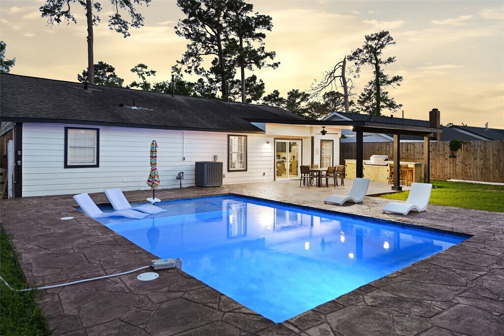 Welcome to your fully furnished monthly rental with all bills included. This 1970's pool home features 4 bedrooms and 2 full bathrooms,a private pool,outdoor kitchen,gas grill,and a hot tub. Enjoy the patio with a BBQ grill and pool table for entertaining. Nestled in East Houston with easy access to major highways,this home is your own oasis. The kitchen comes fully equipped with essentials,and amenities include WiFi,Hulu,Netflix,and Disney+. This property is truly a home away from home. MLS# 8735521