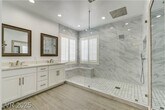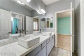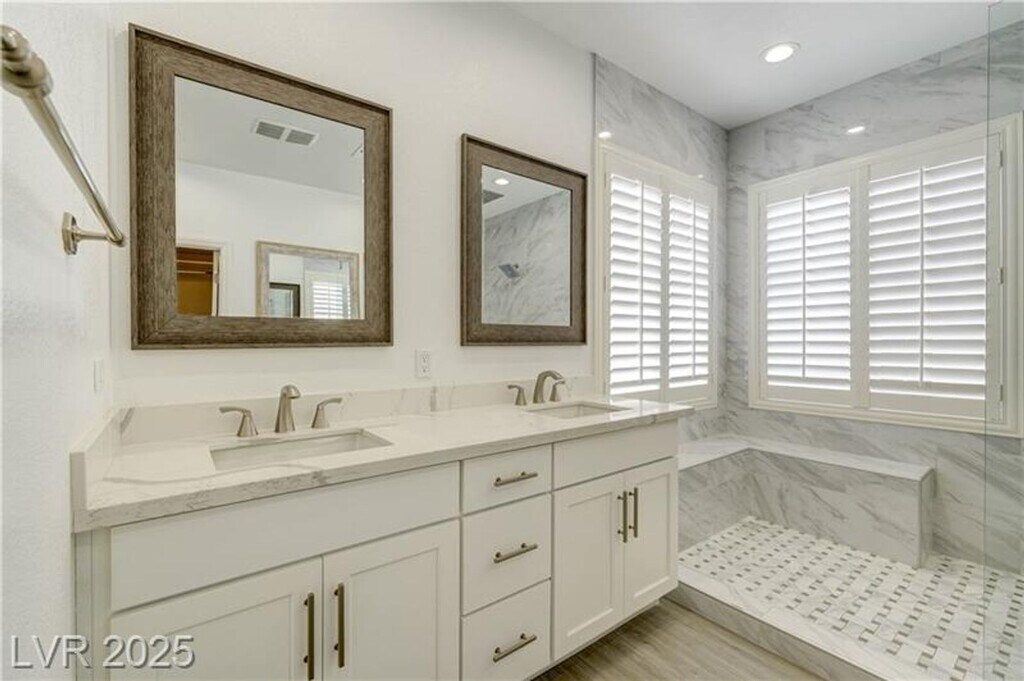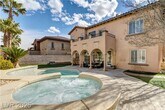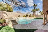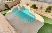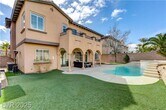 This stunning home is located inside a gated community in the beautiful Paseos @ Summerlin. Featuring 5 beds/3 baths, POOL & SPA and much more. The kitchen features beautiful white cabinetry, walk-in pantry, stainless steel appliances, & Quartz counters complete with built-in dining table. The family room features large windows for natural light & a fireplace. Off the family room is a private courtyard w/ synthetic grass. Downstairs is complete with office off the front entry, & guest bedroom. Upstairs boasts the Primary bedroom & 3 additional bedrooms. Balcony off Primary Bedroom features beautiful mountain & park views. Primary bathroom is complete w/ Quartz counters, oversized walk-in shower, and of course the large walk-in closet with plenty of built-in shelves & drawers. Completing the upstairs is an additional work space. All of this is conveniently located directly across from The Paseos Park! There is so much more, you must see it to believe it! Make this home yours!!!